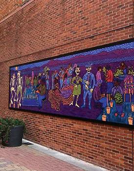 This expansive mural was created with community participation, showcasing mountains, wildlife and colorful abstract designs that uplift the spirit of unity. (9th Avenue and Alpine Street)