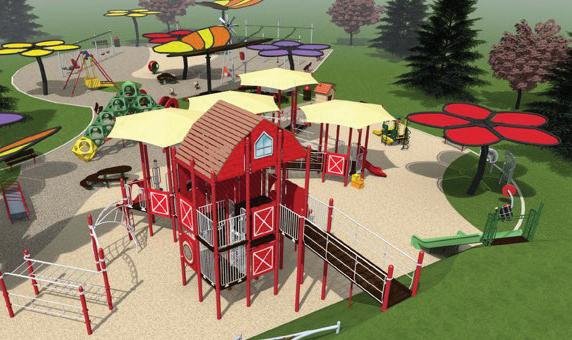 two have raised $586,000, which will cover the cost of ground cover and a main play structure with a farm theme and lots of ramps and slides and areas for interactive play They hope to raise another $400,000 for a wish list of items that include a double zip line for racing, multiple types of swings, a wheelchair-accessible merry-go-round and an interactive dance and play arch The project also is being funded by