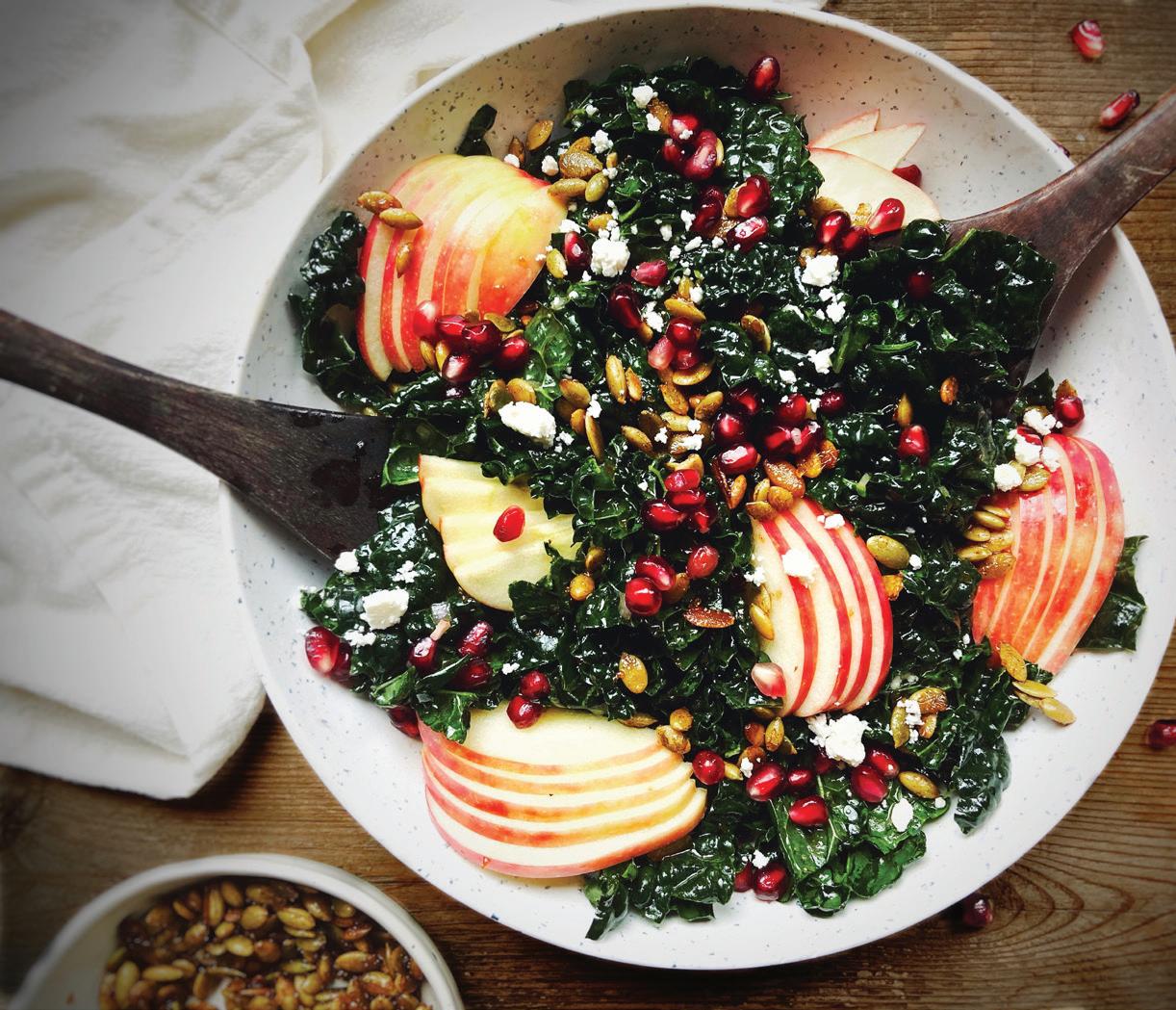 Honeycrisp Kale Salad with Feta + Pomegranate. (Photo courtesy: Spade & Spoon)