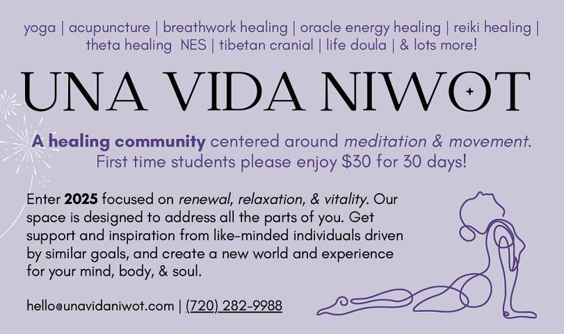 Try a meditation or yoga class at local studios like Full Circle Yoga or Yoga Pod in Longmont. Start small: 10 minutes of meditation or deep breathing can bring balance to busy days