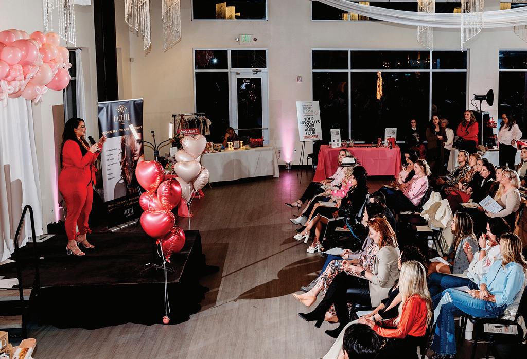 NOCO Women in Business founders Jamie Madsen (left) and Sarah Dick address the group at this spring’s Rise and Bloom event.