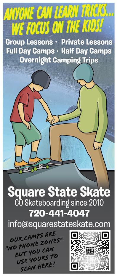 Square State Skate o ers everything from mobile Full Day Skateboard Camps to Overnight Skate Camping Trips in addition to non-mobile Half Day Camps and morning Lesson Programs at our indoor skatepark in Boulder in addition to outdoor parks through our municipal and school district partners.