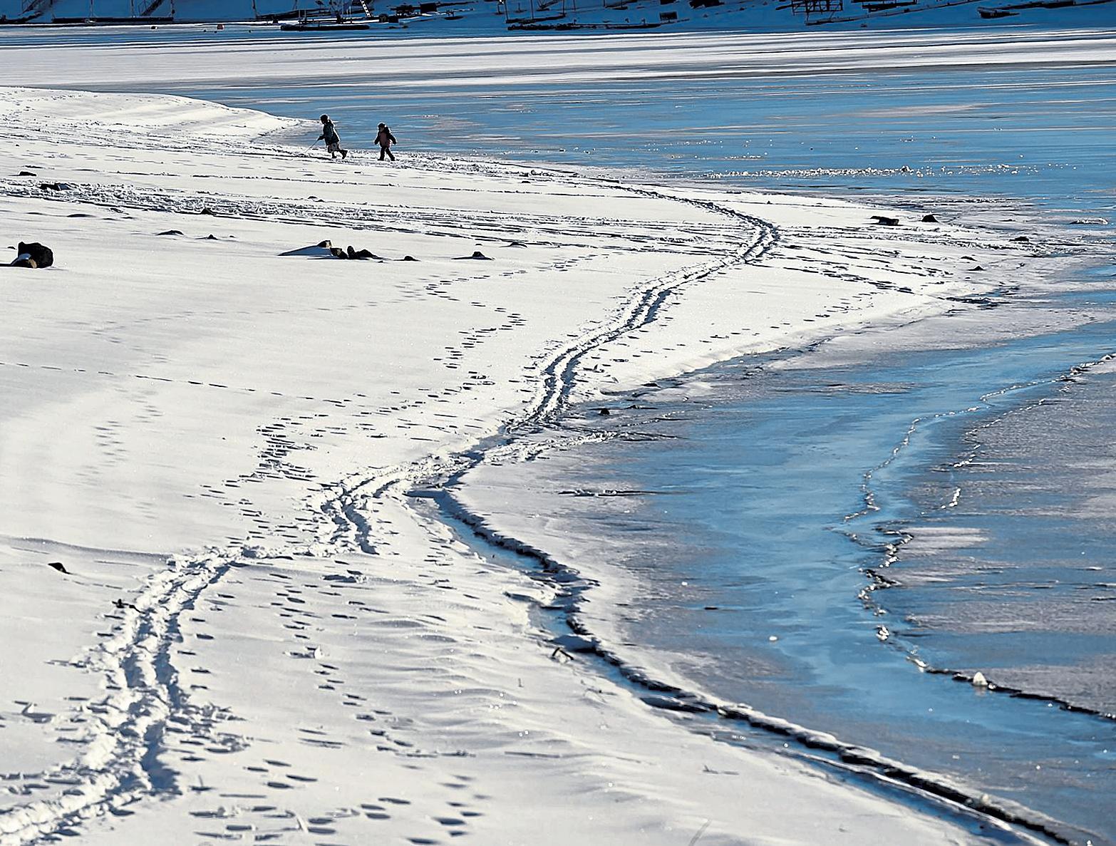 Jenny spaRks / Reporter-Herald People walk in the snow on the swim beach along the shore of Lake Loveland on Jan. 11 in Loveland.