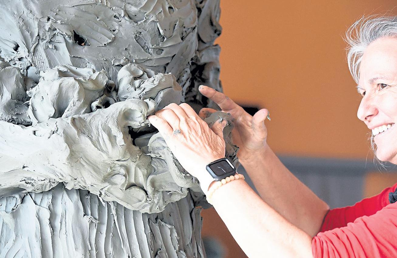 Sculptor Jane DeDecker works on a large piece titled "Now You See Me" depicting a mill worker March 17 in her Loveland studio. DeDecker was chosen as the first artist for the Women's Suffrage Monument project, which looks to establish a national monument in Washington D.C. to commemorate the women's suffrage movement.