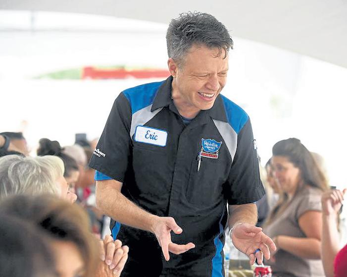 Jenny spaRks / Reporter-Herald Eric Weedin mingles with guests Sept. 9 during the 66th anniversary party for his family's business, Weedin Insurance Agency in Loveland.