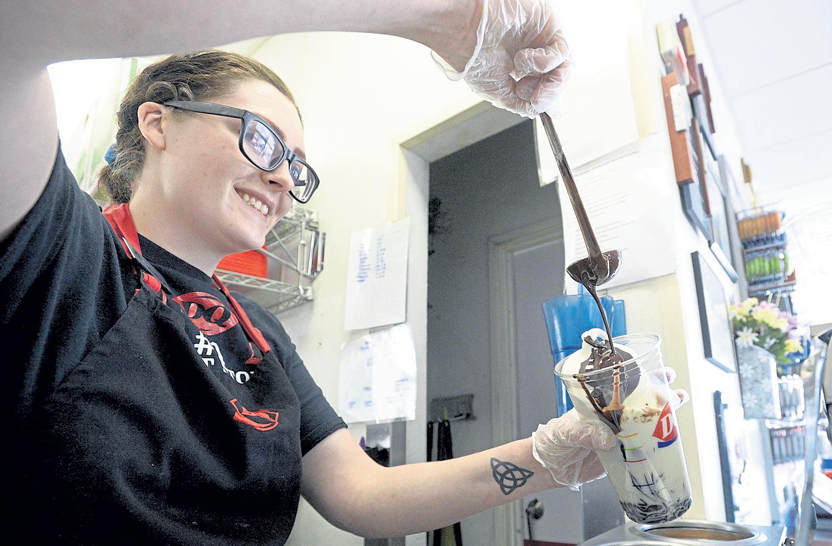 Jenny spaRks / Reporter-Herald Becky Hendrick, team lead at Dairy Queen in Loveland, makes a mint chip shake for a customer on Feb. 17 at the shop downtown.