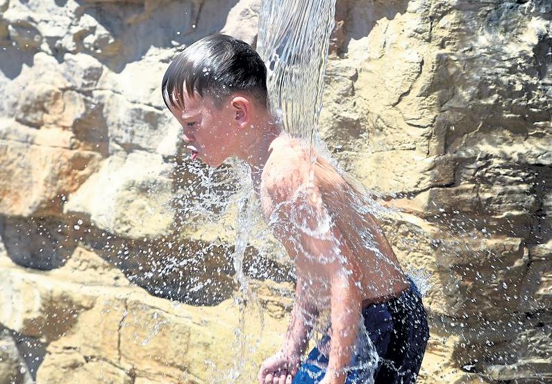 Nolan Effler, 7, plays in the waterfall Aug. 18 at Mehaffey Park in Loveland. Nolan was cooling off with his little sister, Presley Effler, 4, not pictured.