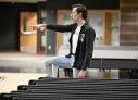 from Longmont area high schools, including Longmont High School and Silver Creek High School. Frederick High School last seasonhadenoughinterest tostartitsowndrumline,a trendMarvinsaidhehopes continues at other district high schools This year’s Longmont show theme was “Chairish Life.” Students used various types of chairs as props, including a rocking chair, school chair, office chair and wheelchair, to tell the story of the circle of life. Props including abluebabyblanketandred graduation cap and gown, added dashes of color. The students wore black, while the screens concealing the chairs and the floor mat were white