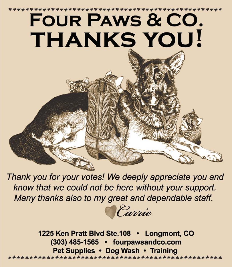 Four Paws & Co., a locally-owned gem has been serving the pet community with top-notch services and products for more than 30 years. Winning the Best Pet Supply Store award is a testament to the personalized care they extend to their clientele As owner Carrie Adams puts it, “We develop relationships with customers and have walked through multiple pets with many of them.” One stop at Four Paws & Co. and your pet needs are met. From pet supplies to grooming, dog training and a customer favorite self-service dog wash. Additionally, they carry unique items like BioBrilliant Dental Health powder, a local Boulder product that guarantees your pet a healthy and clean mouth without the need for brushing. Adams also highlights that serving in Boulder County is a pleasure as “Many people desire to feed their pets well and are open to using the best nutrition available ” Trust Four Paws & Co for all your pet needs, a place where relationships are treasured. // 1225 Ken Pratt Blvd., #108, Longmont, (303) 485-1565, fourpawsandco.com