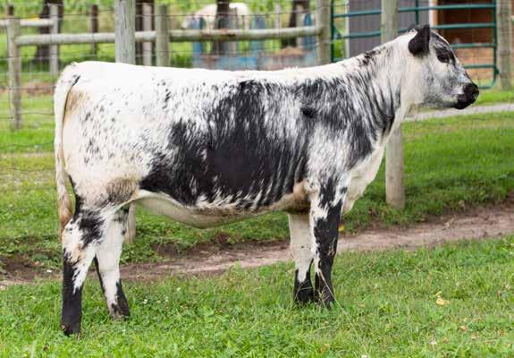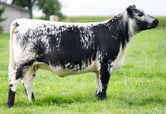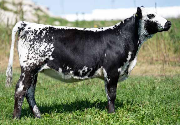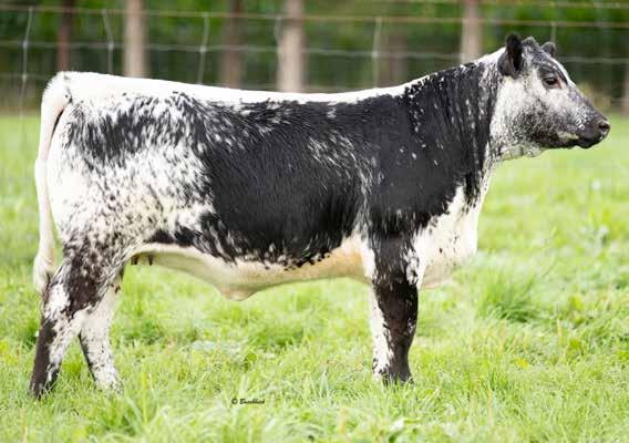 Kerfuffle is a solid heifer that also comes from our “cash cow” Steele Dramatic 4D. Though she lacks the speckled coat, that is all she is lacking. She has the structure to become a great herd cow that will help put money back in your pocket.