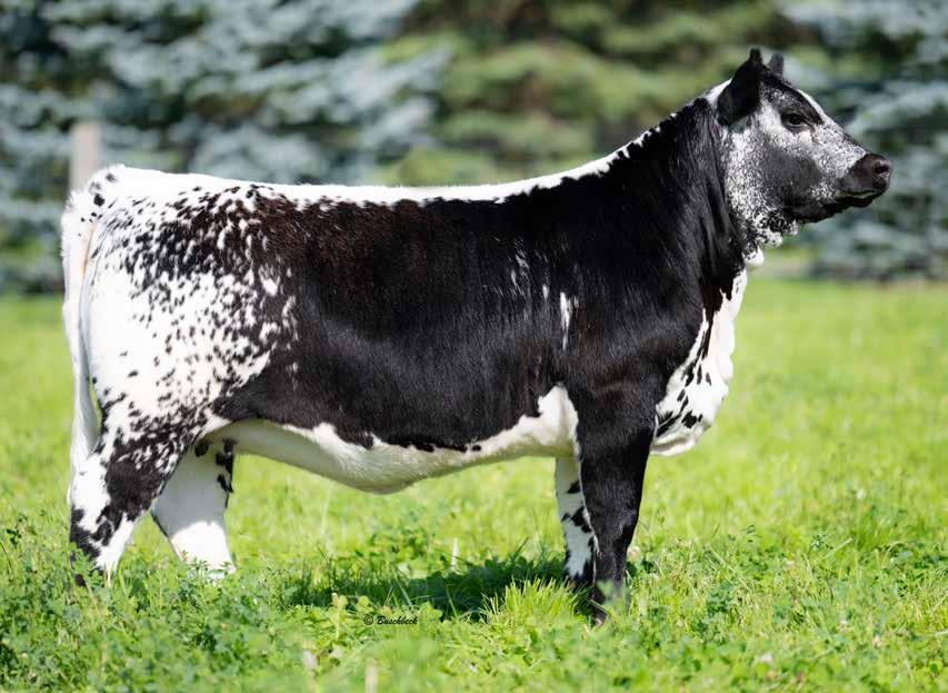 From the donor pen at STS comes Spots ‘n Sprouts 18X. Milk comes to mind with Styals Lightning Ladd 14D on the bottom side and Oscar 8S on the top side. This leaves no guessing in terms of milk! The beauty of this combo is to be ahead of the game getting embryos in on one of the most powerful Speckle Park bulls in the breed today. Greenwood purchased 18X last summer from the STS Select Sale. Can’t wait to see what they come out with from this prolific cow!