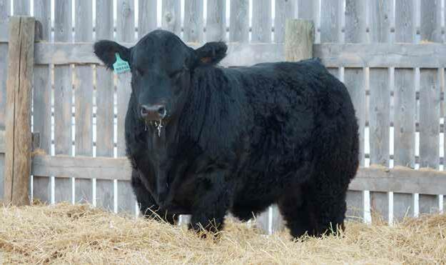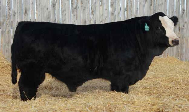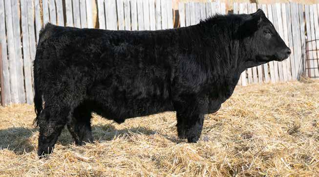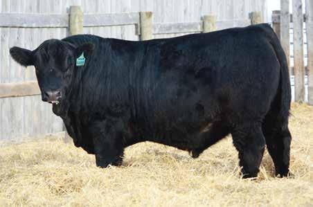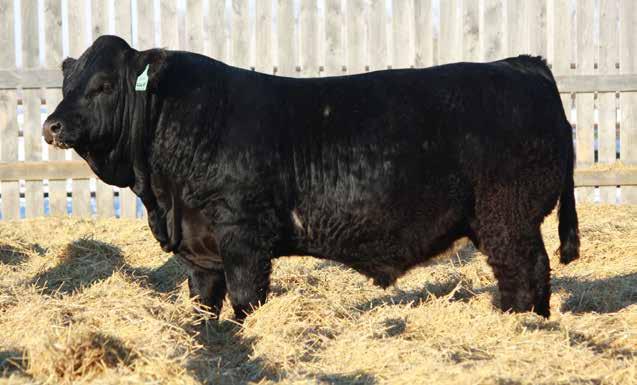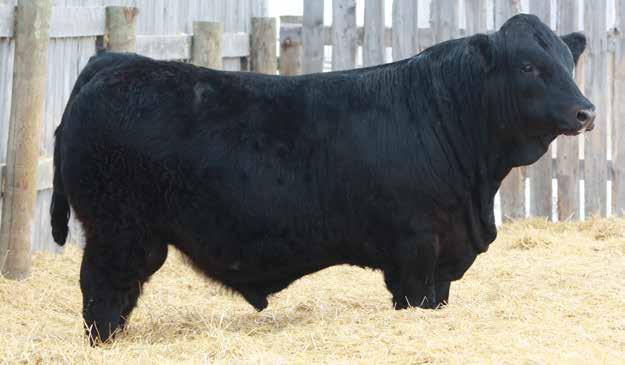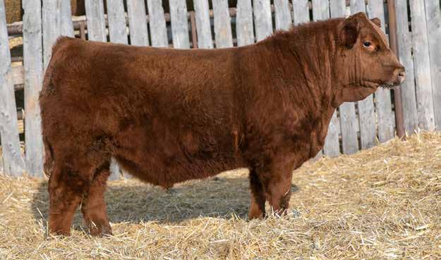 A solid, squarely built, good footed bull with style and eye appeal. We had the misfortune to lose his mother mid July so he got by on grass alone till fall. He however made up for lost time once on feed, posting our highest av daily gain. His EPDs are about breed av for calving and above av for performance and milk. His 6 yr old mother will sure be missed around here. She only ever had bull calves and every one of them has been a solid contender for the top of our bull pen. Good bulls come from great cows and this guy certainly qualifies.