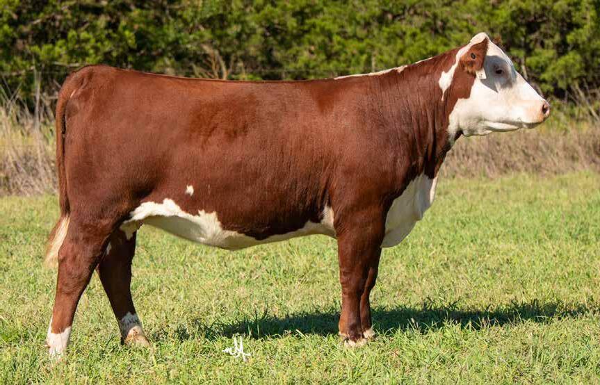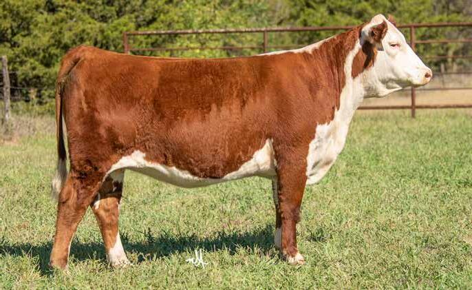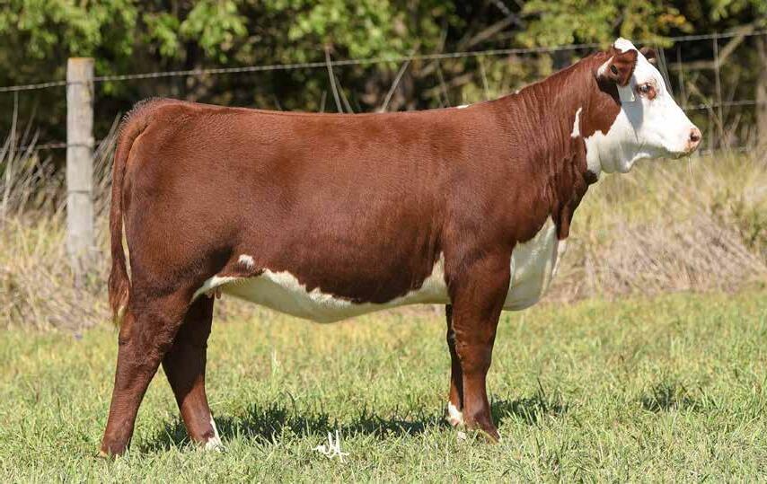 34 39LOT 40LOT KCF BENNETT ENCORE Z311 ETNJW 79Z Z311 ENDURE 173D ET BW 91H 100W RITA 79Z ETLOEWEN GENESIS G16 ET MSU TCF REVOLUTION 4RLOEWEN 77 48 MISS 344N 4RB42ET PCR JACKLYN NIKOLE 344N HYALITE ON TARGET 936 {MSUDC}R LEADER 6964 R MISS REVOLUTION 1009KJ 271C TERRI LEAD 835E KJ TMG 236X TEBOW 646ZKJ 865A TERRI 271C KJ 208X TORI 865A DOB: 02/16/2021 REG: 44235835 POLLED39 KJ 835E GENETTE 300J ET Outstanding spread from Calving ease – birth – weaning weight! Her dam 835E is a perfect uddered R LEADER 6964 daughter! Bred AI to SCC 167Y Trust 1701 P43777035 on 5/9/22. Preg. checked safe to AI date. PE to KJ 482Y Leader 873E ET P43833918 5/15/22 - 7/6/22 CE BW WW YW DMI SC SCF MM M&G MCE 11.4 1.3 70 115 0.8 1.7 15.9 27 62 7.6 121 1.2 1.2 87 0.038 0.64 0.23 $365 $459 $143 MCW UDDR TEAT CW FAT REA MARB BMI BII CHB KCF BENNETT ENCORE Z311 ETNJW 79Z Z311 ENDURE 173D ET BW 91H 100W RITA 79Z ETLOEWEN GENESIS G16 ET MSU TCF REVOLUTION 4RLOEWEN 77 48 MISS 344N 4RB42ET PCR JACKLYN NIKOLE 344N EFBEEF TFL U208 TESTED X651 ETEFBEEF BR VALIDATED B413 EFBEEF 4R THYRA Y865BR VALIDATED B413 5064 7603 CHURCHILL RED BULL 200ZBR RED BULL 200Z 2111 5064 BR BENNETT OF 5240 2111 DOB: 02/17/2021 REG: 44270874 HOMO POLLED40 KJ 7603 GENETTE 307J ET 307J is a full sister to the high selling Hereford bull in the Denver Sale 2022! Selling to Larson Herford Farm, WI and Phil Barnett, New Zealand. She is moderate in her frame, look at her BREED LEADING figures! Top 1% Marbling, Top 2% CHB, Top 10% CE, Top 5% REA. Excellent pigment and markings! Homozygous Polled! Bred AI to KJ BJ 309C Leader 182F P43930534 on 5/9/22. Preg. checked safe to AI date. PE to KJ C15 Trust 452J 44279157 from 5/15/22 - 7/6/22 CE BW WW YW DMI SC SCF MM M&G MCE 8.4 0.9 62 96 0.8 1.6 18.3 32 63 7.8 66 1.2 1.2 78 0.128 0.76 0.72 $408 $528 $165 MCW UDDR TEAT CW FAT REA MARB BMI BII CHB KJ 271C TERRI LEAD 835E