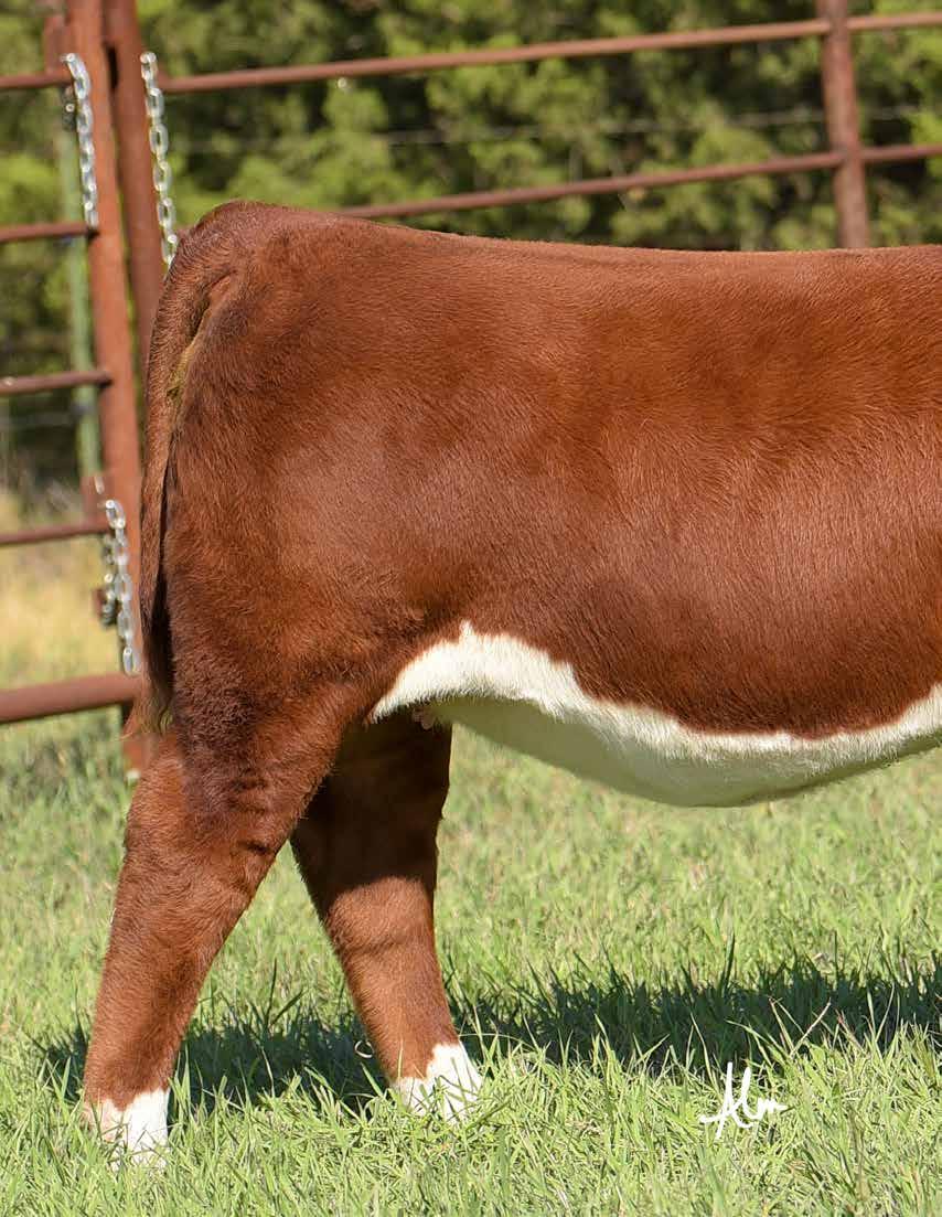 28 30LOT 31LOT HYALITE ON TARGET 936 {MSUDC}R LEADER 6964 R MISS REVOLUTION 1009KJ BJ 309C LEADER 182F SHF WONDER M326 W18 ET{MDC}KJ BJ 236X TIMEWISE 309C ET KJ 618N TIMEWISE 236X TH 122 71I VICTOR 719TCRR 719 CATAPULT 109 CRR 4037 ECLIPSE 808KJ B002 MISTY MEGHAN F5 ET NJW 98S R117 RIBEYE 88X ETKJ BJ 274S MISTY B002 ET KJ 2054 MISTY 274S ET DOB: 02/09/2022 REG: 44372191 POLLED30 KJ DPH F5 MISTY MEGHAN 645K ET Marked and built to perfection! Her full sister “Gemstone” was Reserve Grand Champion at the 2021 JNHE in Kansas City and has calved at 23 months of age. That is impressive. Her sire 182F “EARS” has been tested in the National Sire Test and proven to be of extreme calving ease and still can sire National Champions! That is hard to do. CE BW WW YW DMI SC SCF MM M&G MCE 1.3 3.4 67 106 0.3 1.2 18.0 33 67 -0.8 104 1.2 1.2 68 0.038 0.53 0.04 $377 $457 $107 MCW UDDR TEAT CW FAT REA MARB BMI BII CHB HYALITE ON TARGET 936 {MSUDC}R LEADER 6964 R MISS REVOLUTION 1009KJ BJ 236X LEADER 894E ET CRR ABOUT TIME 743KJ 618N TIMEWISE 236X KJ 122L LENA 618N TH 122 71I VICTOR 719TCRR 719 CATAPULT 109 CRR 4037 ECLIPSE 808KJ B002 MISTY MEGHAN F5 ET NJW 98S R117 RIBEYE 88X ETKJ BJ 274S MISTY B002 ET KJ 2054 MISTY 274S ET DOB: 04/06/2022 REG: 44361521 POLLED31 KJ DCC F5 SPUNKY 824K Our donor F5’s natural born calf this spring and she is wide based and strong just like her mother. Big rib cage, wide pinned and moves extremely sound! Spunky is the youngest heifer in the sale but don’t over look for as this is a donor female in the making. CE BW WW YW DMI SC SCF MM M&G MCE -4.0 3.7 66 102 0.2 1.5 16.4 38 71 -2.4 100 1.2 1.2 77 0.008 0.79 -0.07 $368 $436 $114 MCW UDDR TEAT CW FAT REA MARB BMI BII CHB FULL SISTER • GEMSTONE 181H ET KJ B002 MISTY MEGHAN F5 ET