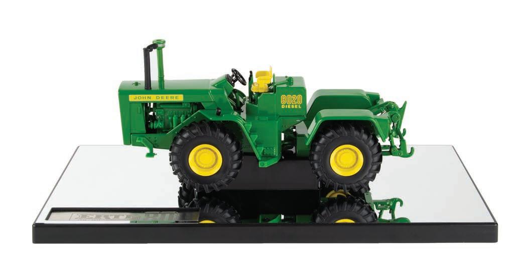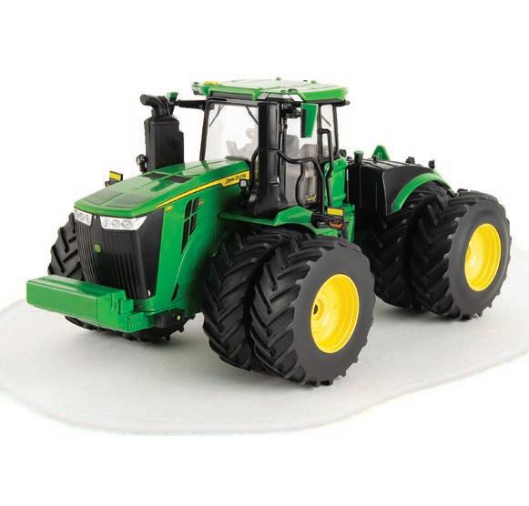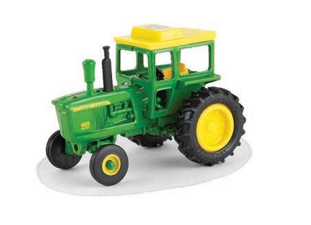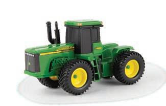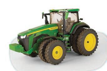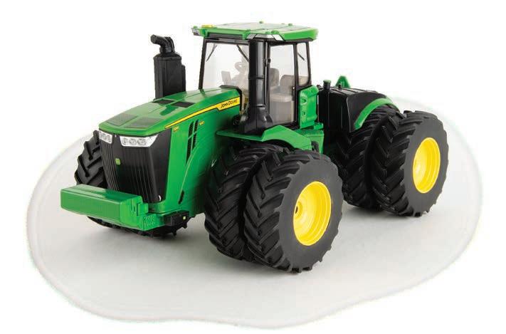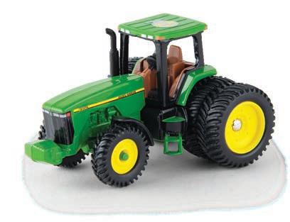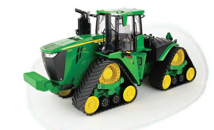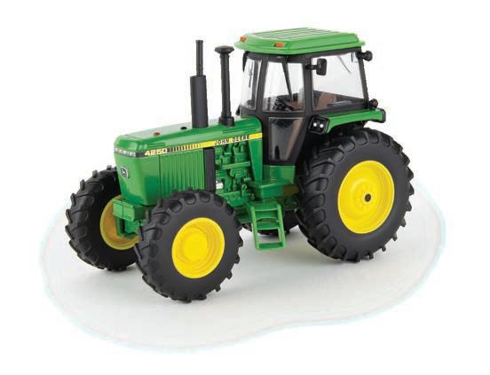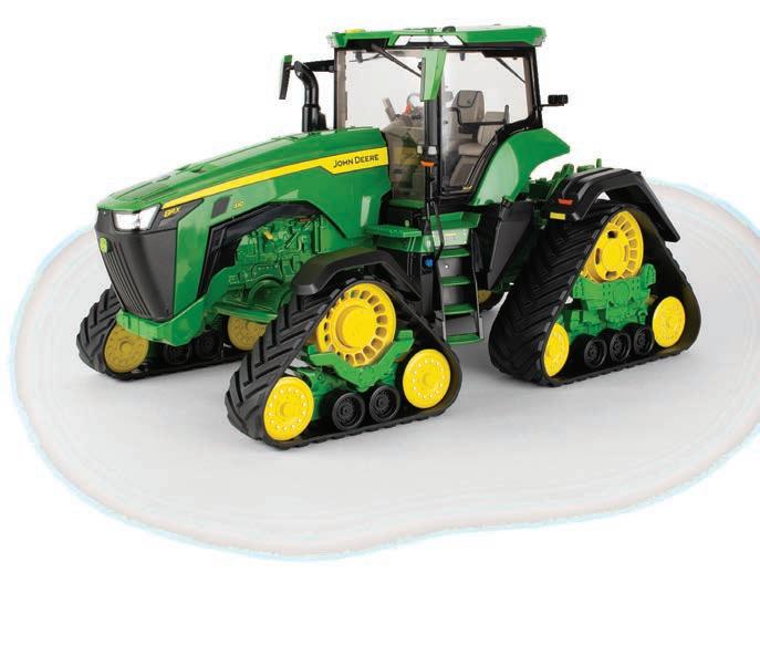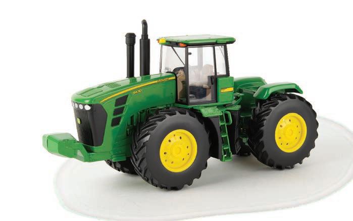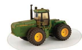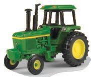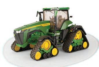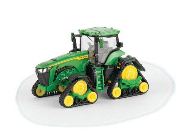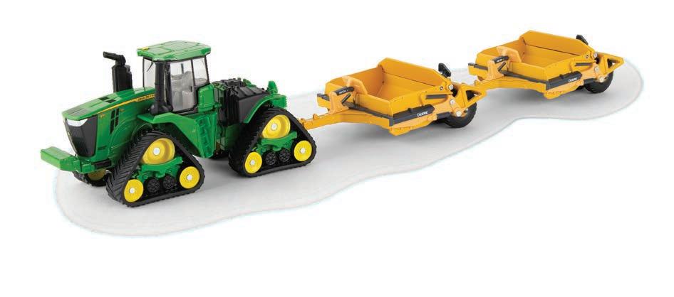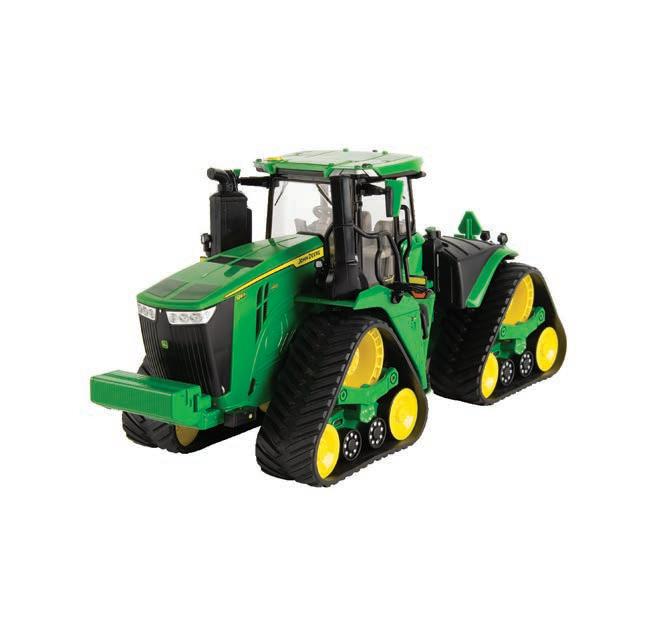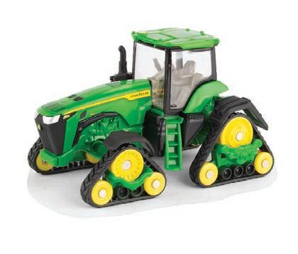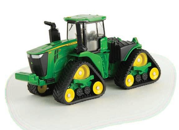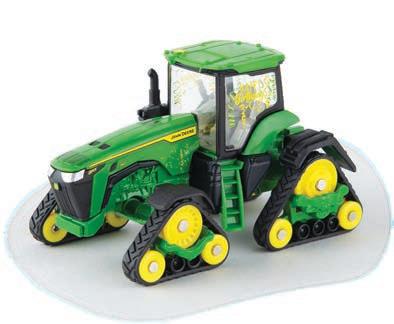 Replicates 18” front and rear tracks set at an 120” track spacing. Constructed with die-cast body and tracks frames. Clear cab windows reveal detailed interior. 3-point hitch raises and lowers. Features mirror, light, and railing detail.