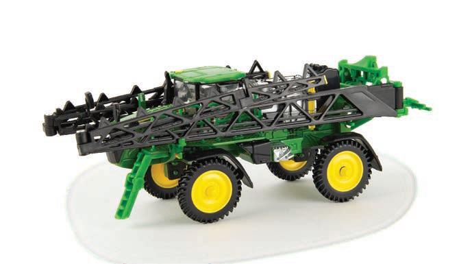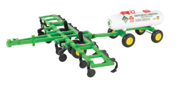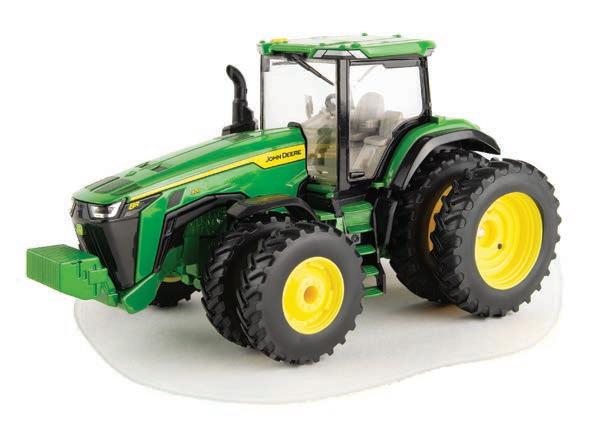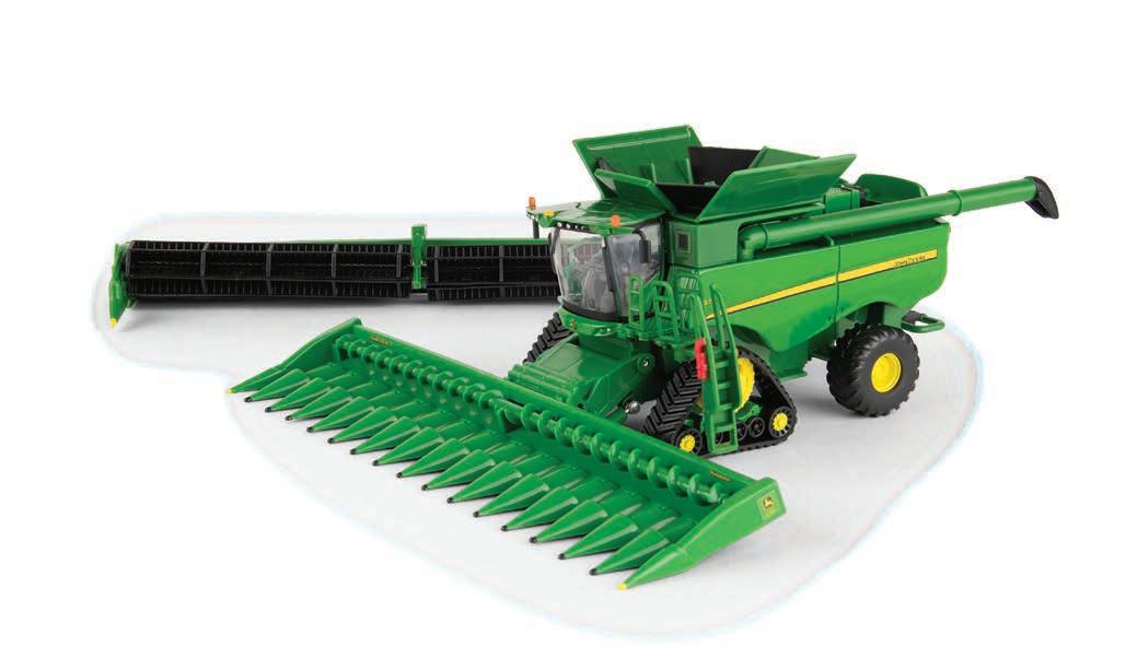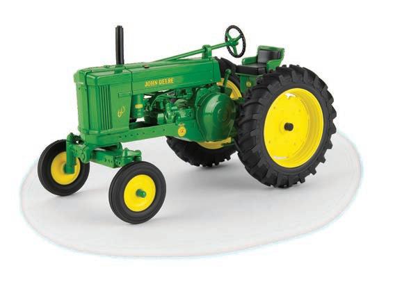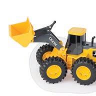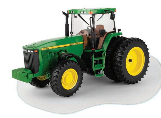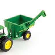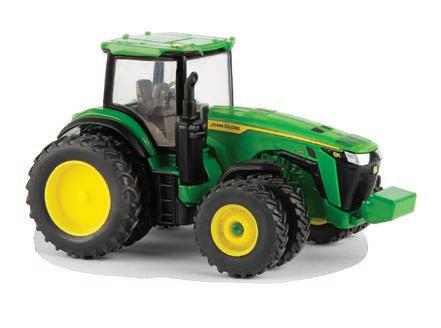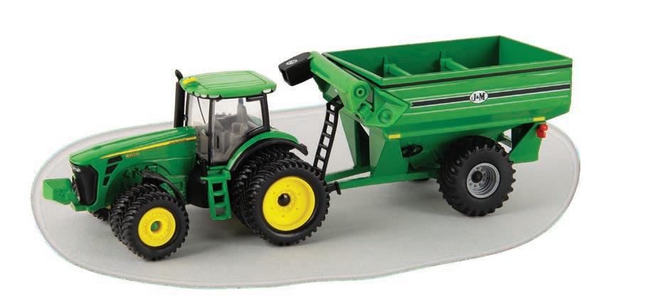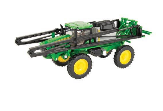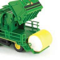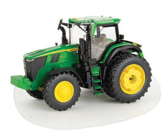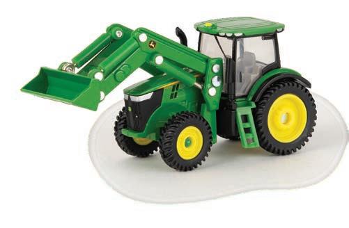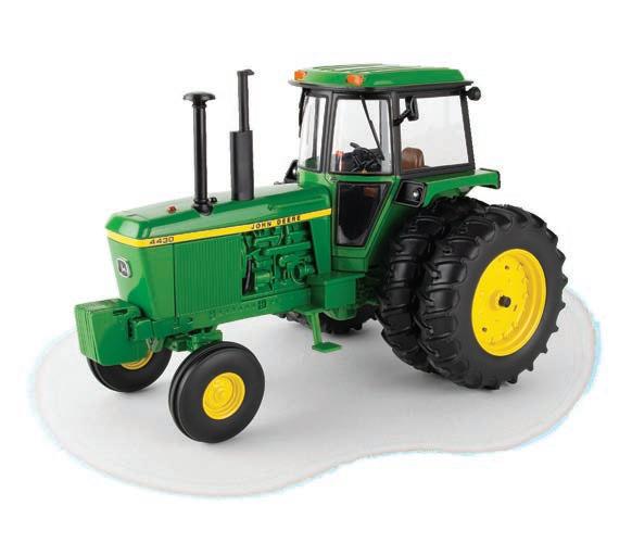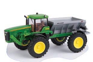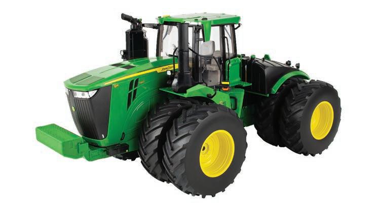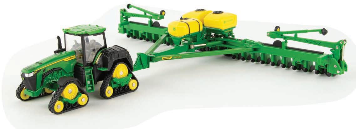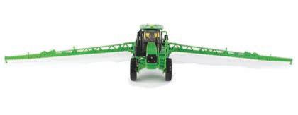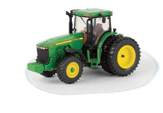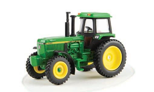 Replicates 18” front and rear tracks set at an 120” track spacing. Constructed with die-cast body and tracks frames. Clear cab windows reveal detailed interior. 3-point hitch raises and lowers. Features mirror, light, and railing detail.