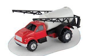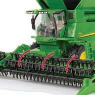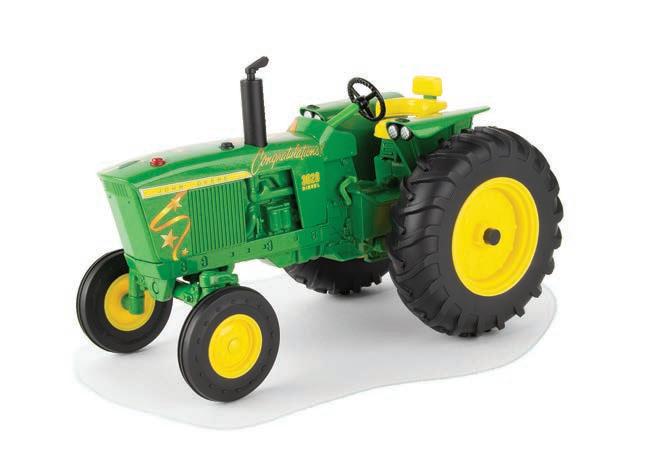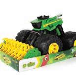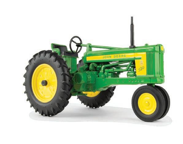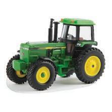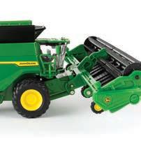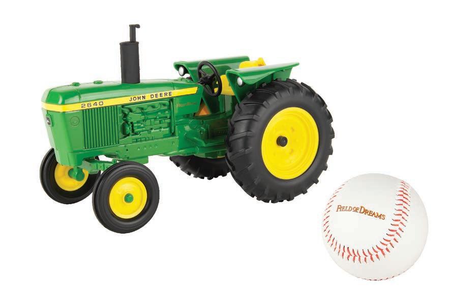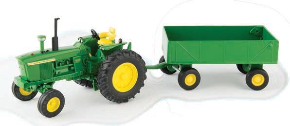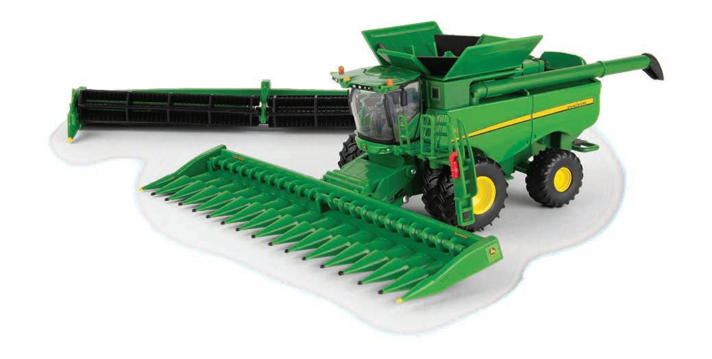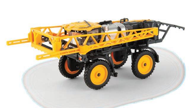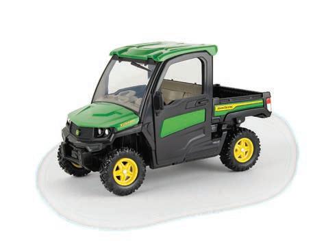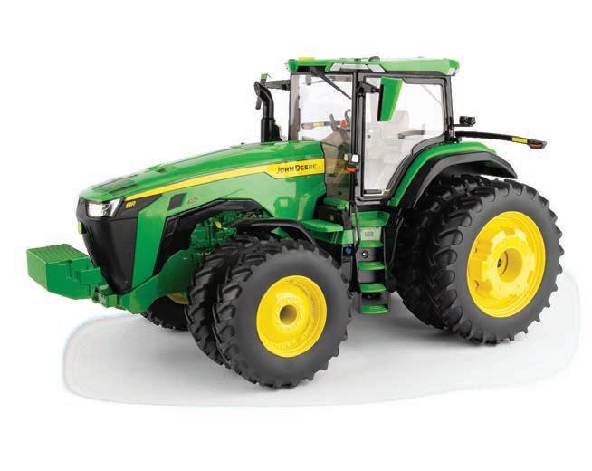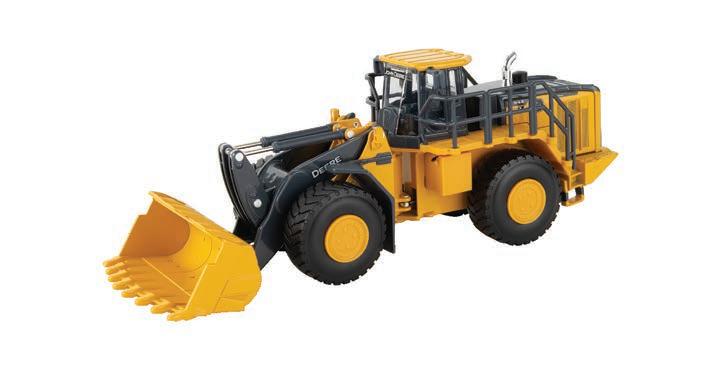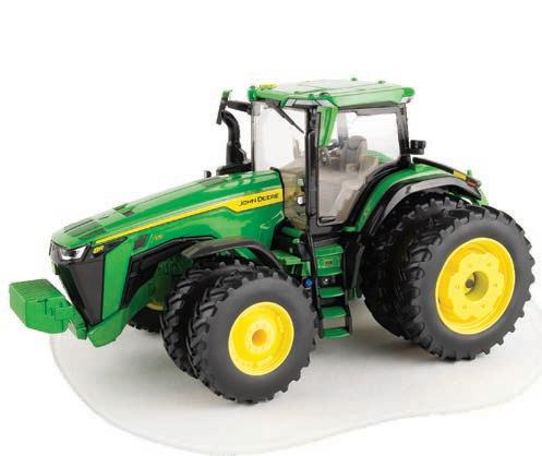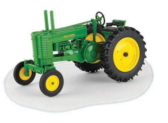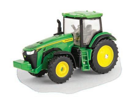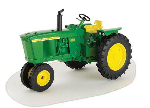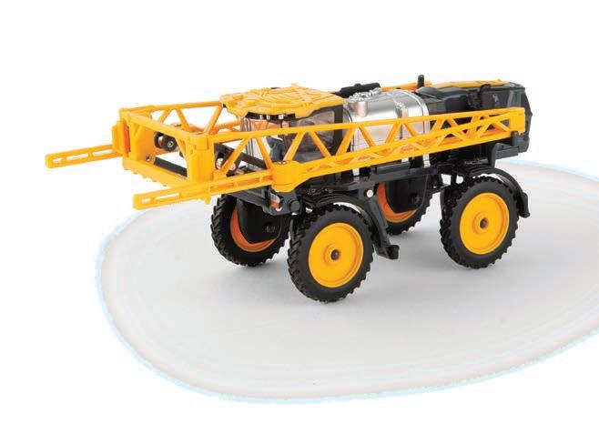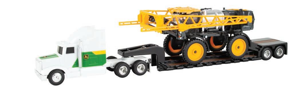 Replicates 18” front and rear tracks set at an 120” track spacing. Constructed with die-cast body and tracks frames. Clear cab windows reveal detailed interior. 3-point hitch raises and lowers. Features mirror, light, and railing detail.