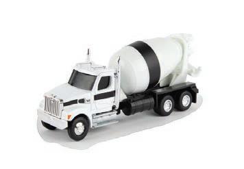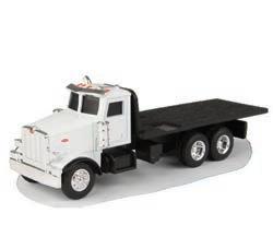 Constructed with die-cast body, hood, front axle, and cab roof. Configured with dual front and rear wheels. Features clear cab windows, detailed interior, and soft feel tires. Additional details include external mirrors and warning arms.