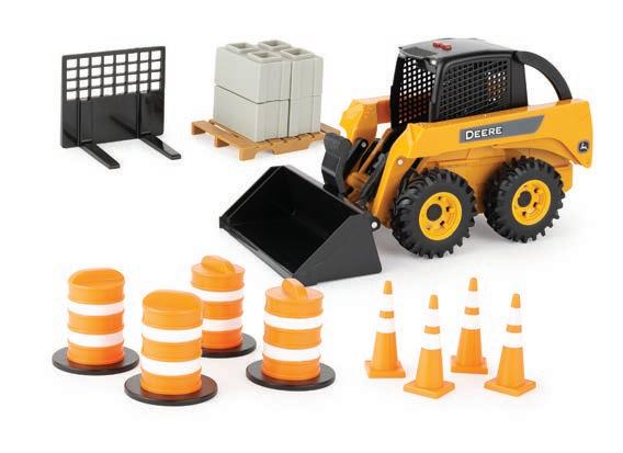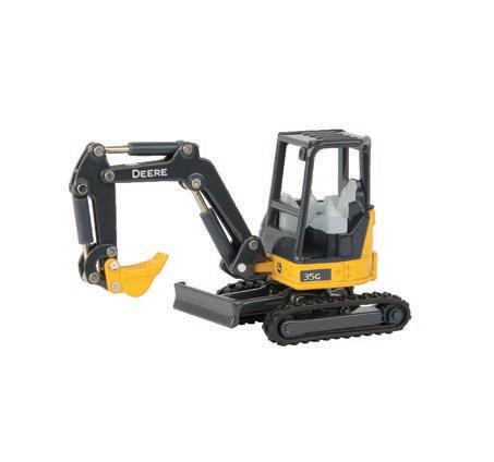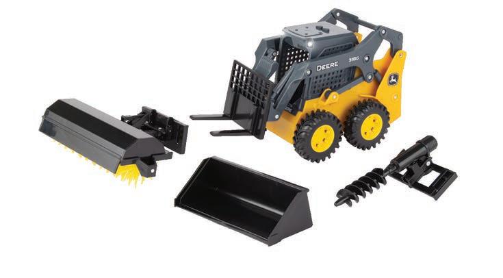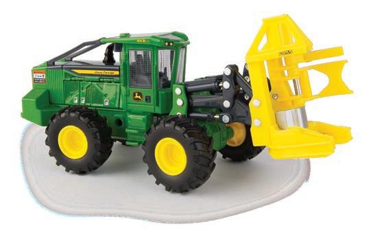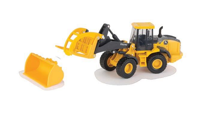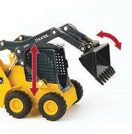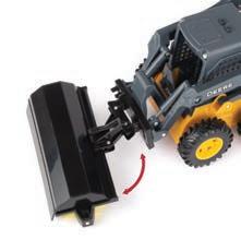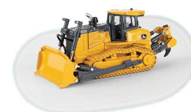 Features die-cast front and rear bodies, die-cast track frames, clear cab windows, detailed interior, articulated steering and the 3-point hitch raises and lowers. Rotating soft feel tracks.