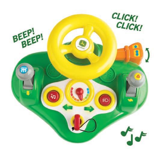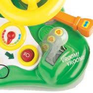 Features 12 interactive and fun activities. Turn key to start tractor engine. Working levers, turn signal and horn. Includes (3) "AA" batteries.