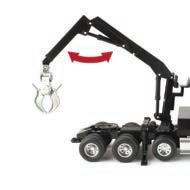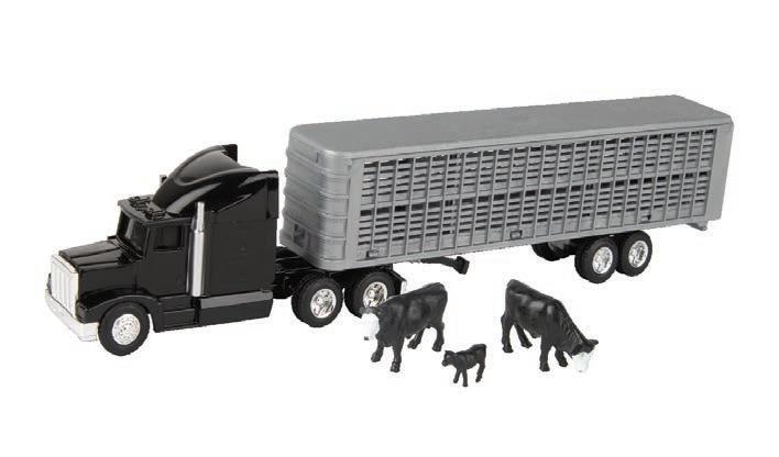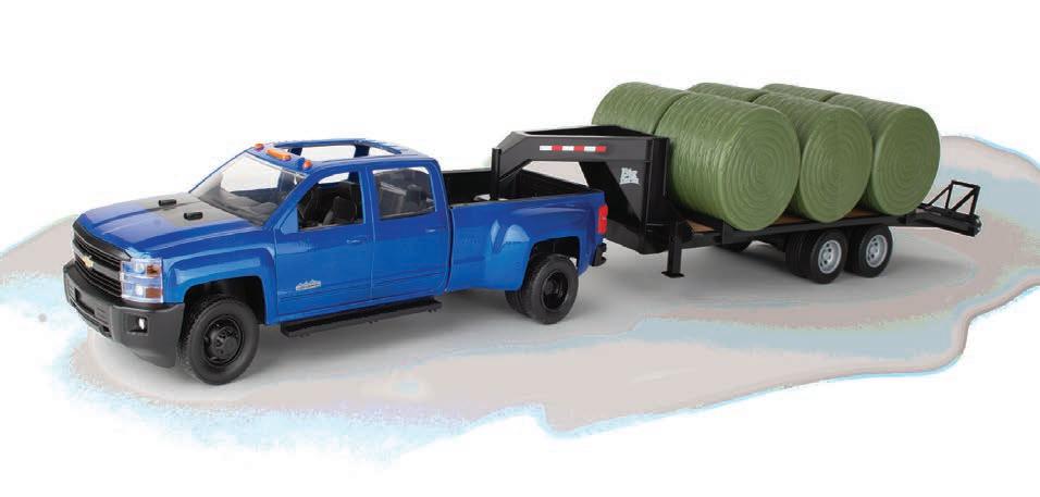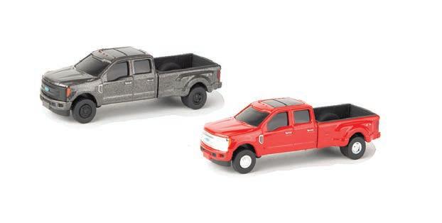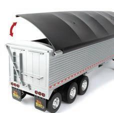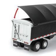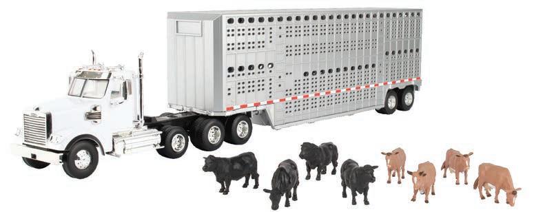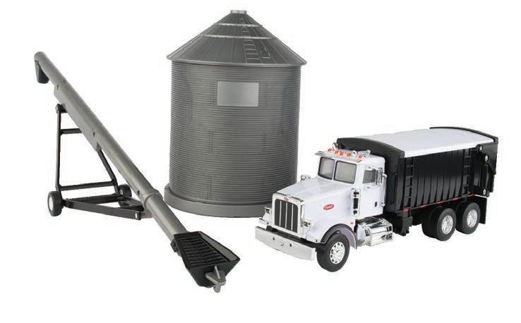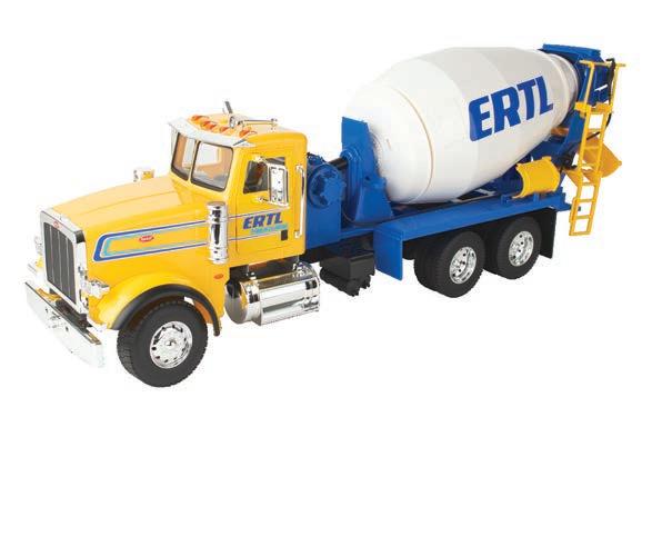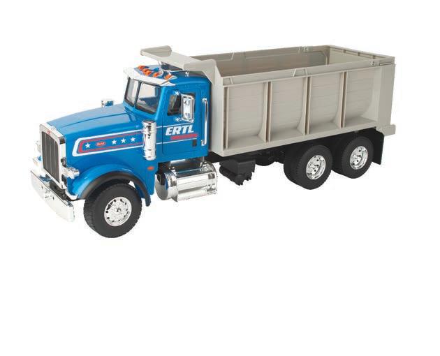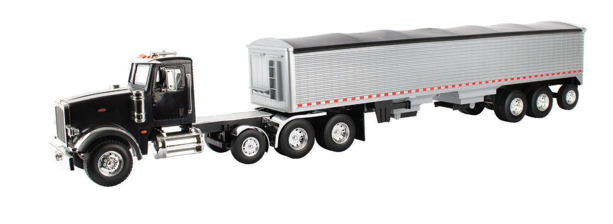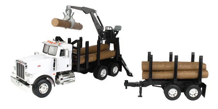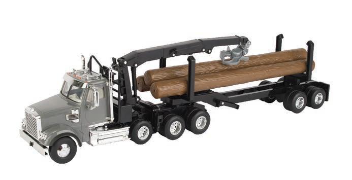 Represents the 13.6L diesel engine. Updates include engine details, right side body panel, and exhaust stack. Constructed with die-cast frame, drawbar, and wheels. Configured with front and rear duals. Features articulated frame, opening hood, and authentic style rear drawbar. Opening left side cab door and clear cab windows reveal a detailed interior. Includes light detail and pivoting mirrors.
