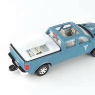 Constructed with die-cast body. Configured with front and rear duals. Features an opening hood, opening cab door, clear cab windows and detailed interior. Includes mirror, light, and warning arm details. Dusty painted chase units are randomly inserted.