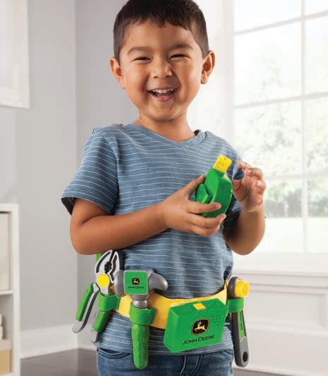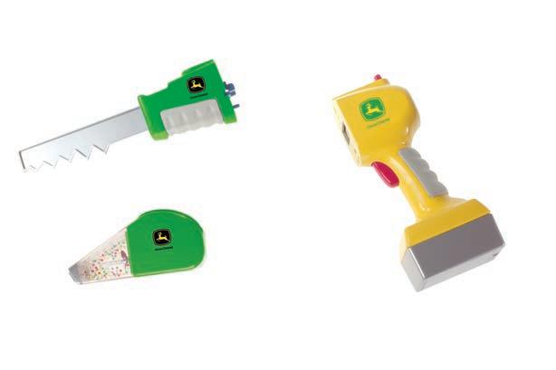 Now with 6 tools. Features tool belt with talking buckle; 2 phrases and 3 tool sounds. Includes 6 John Deere tools. Includes (3) "AAA" batteries.