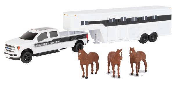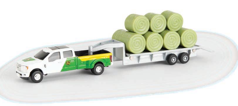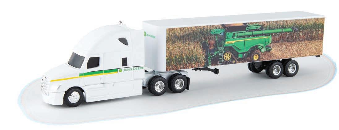 Constructed with die-cast body. Clear cab windows that reveal detailed cab interior. Configured with rear duals. Features authentic decoration. 3-point hitch raises and lowers. Packaged in a collector friendly window box.