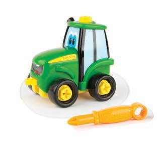This ride on features loads of activities. Use the included screwdriver to take Johnny’s engine apart and put together again for take apart play, or turn the GPS with the screwdriver for fun clicking sounds. Press the blinkers to activate lights, or honk the horn and turn the key for fun farm tunes and sounds. Flip open the seat to stow the screwdriver or favorite toys that want to come along for the ride. Includes (3) “AAA” batteries.