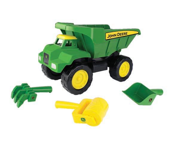 The ultimate dump truck sandbox toy! Real steel dump bed with easy to grip handle to haul and dump big loads.