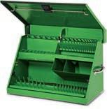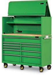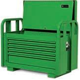 Keep your tools secure and organized with the John Deere Tool Chests and Cabinets. Powder-coated steel construction includes heavy-duty ball-bearing drawer slides with a load rating of 100-lbs. per pair. Unique raise-and-release drawer fronts keep drawers closed and secure. Tool Chests feature gas strut lid support, and cabinets include oversized polyurethane casters with a 2,000-lb. load rating.