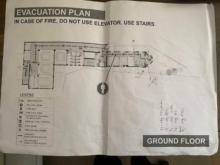 Learning necessary type of equipment and guidelines of fire fighting in an office building