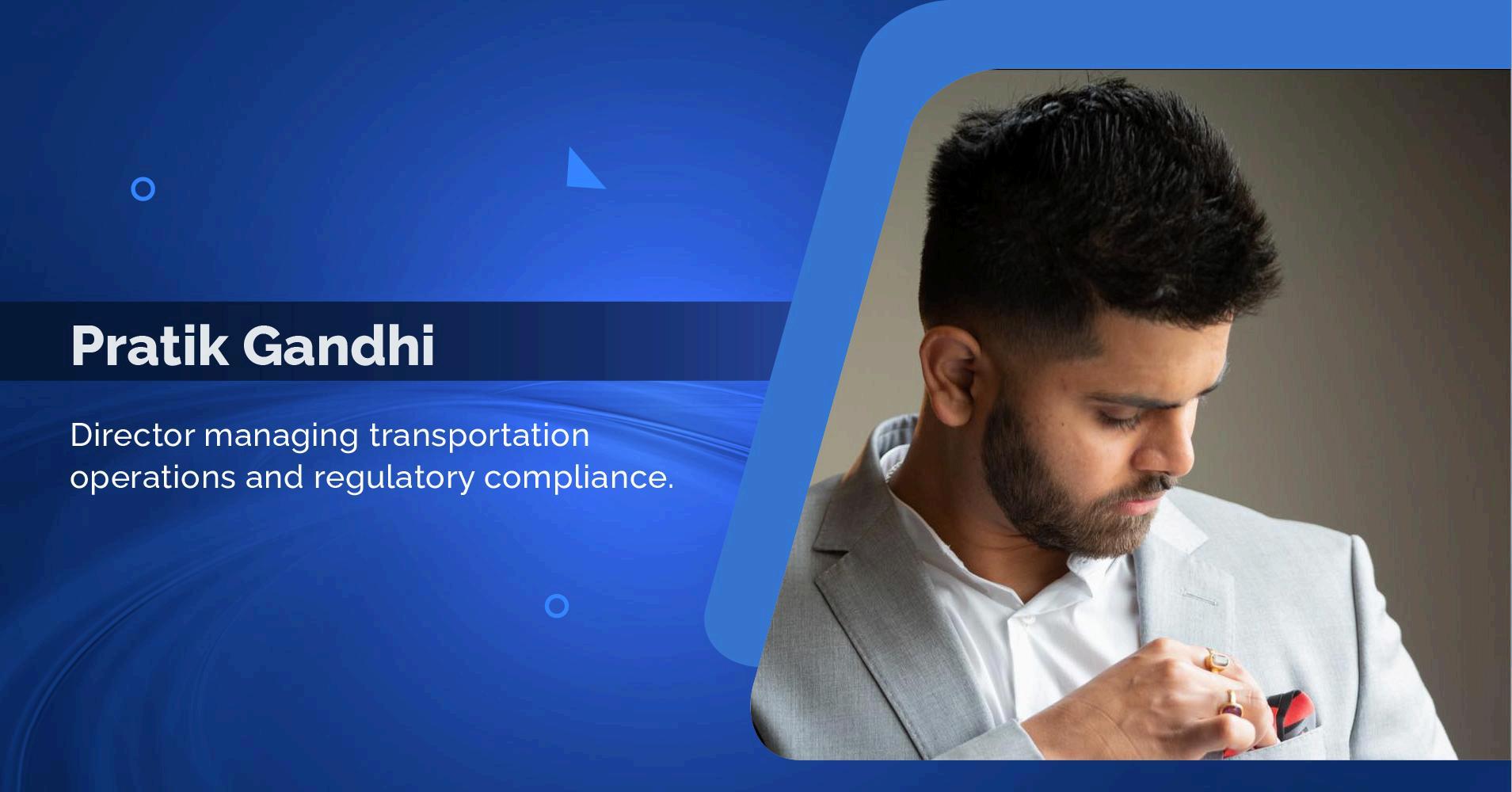 In 2016, Pratik advanced into leadership as Director of Operations at Exotic Transport. In this role, he managed transportation operations, including dispatching, scheduling, and vehicle coordination His responsibilities also included hiring and training employees, as well as collaborating with the safety and maintenance departments to ensure regulatory compliance.