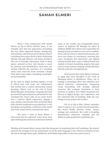 Celebrating the rich cultures of Muslim and MENA Culinary Arts, this edition of Fig & Olive was a feast for the senses with a multitude of mouthwatering recipes submitted. The challenge lay in selecting one that truly encapsulated the essence of our culinary journey. This cover represents a symbol of unity, community and a nostalgic