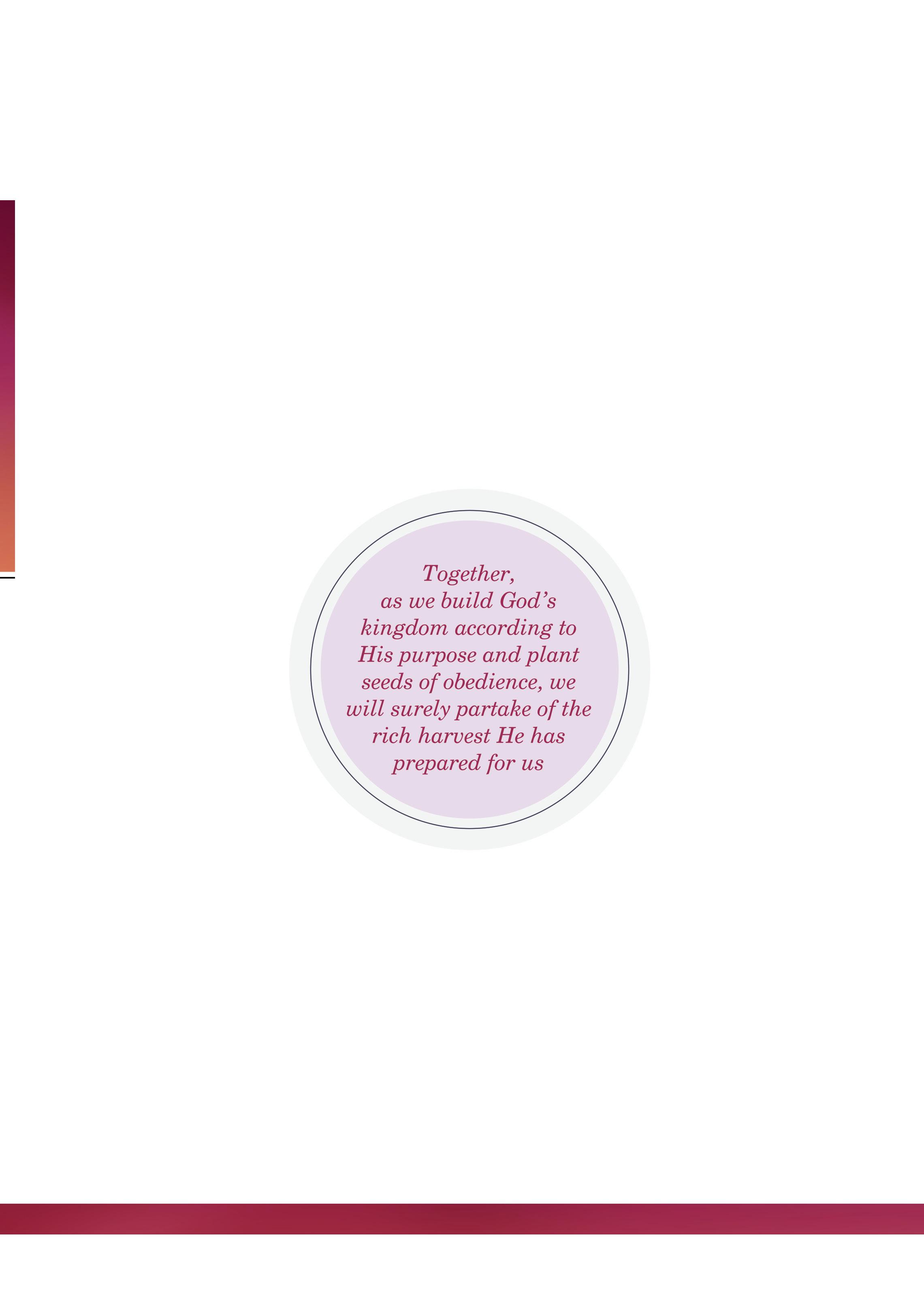with us in faith. Together, as we build according to God’s purpose and plant seeds of obedience, we will surely partake of the rich harvest He has prepared for us.
