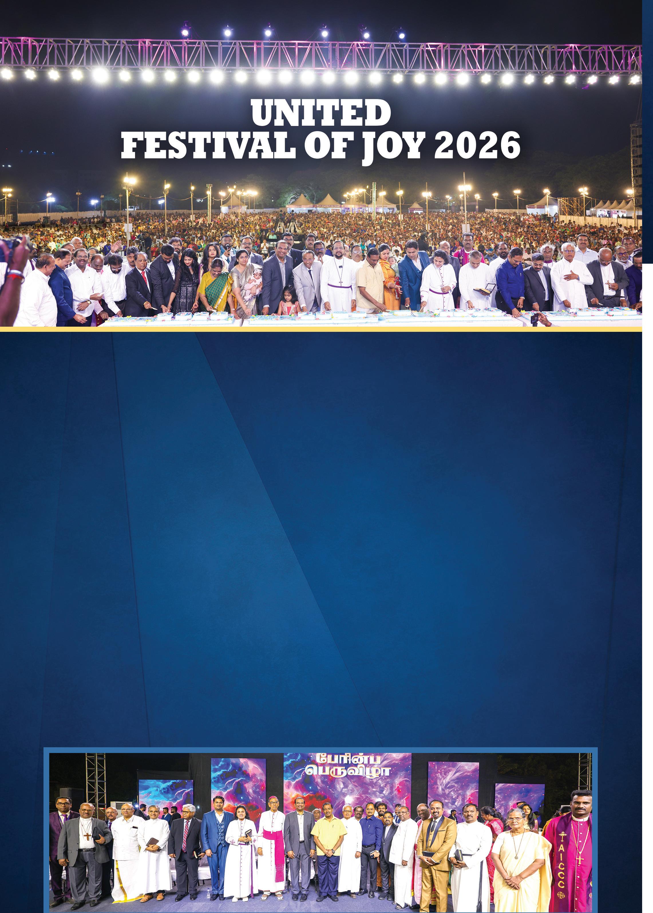 The Puthu Varuda Perinba Peruvizha, conducted on 4 January 2025 at the YMCA Grounds, Nandanam, Chennai, was a memorable evening of spirit filled word and worship setting an example for Christian unity. Around 12,000 believers from diverse churches, traditions, and denominations gathered with one heart and one purpose to receive God’s guidance and abundant blessings for the New Year 2026. Around 7 lakh viewers joined us online across social media platforms.