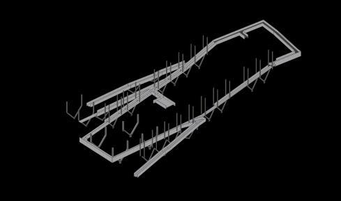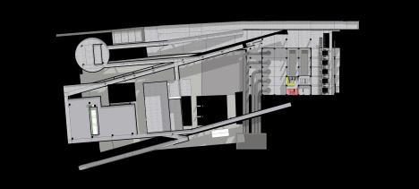 The building has 4 different building masses: (1) the mass of the new pump house building, (2) the mass of the existing pump house building with an extension for the gallery area, (3) the mass of the water gate guard, and (4) the guard post