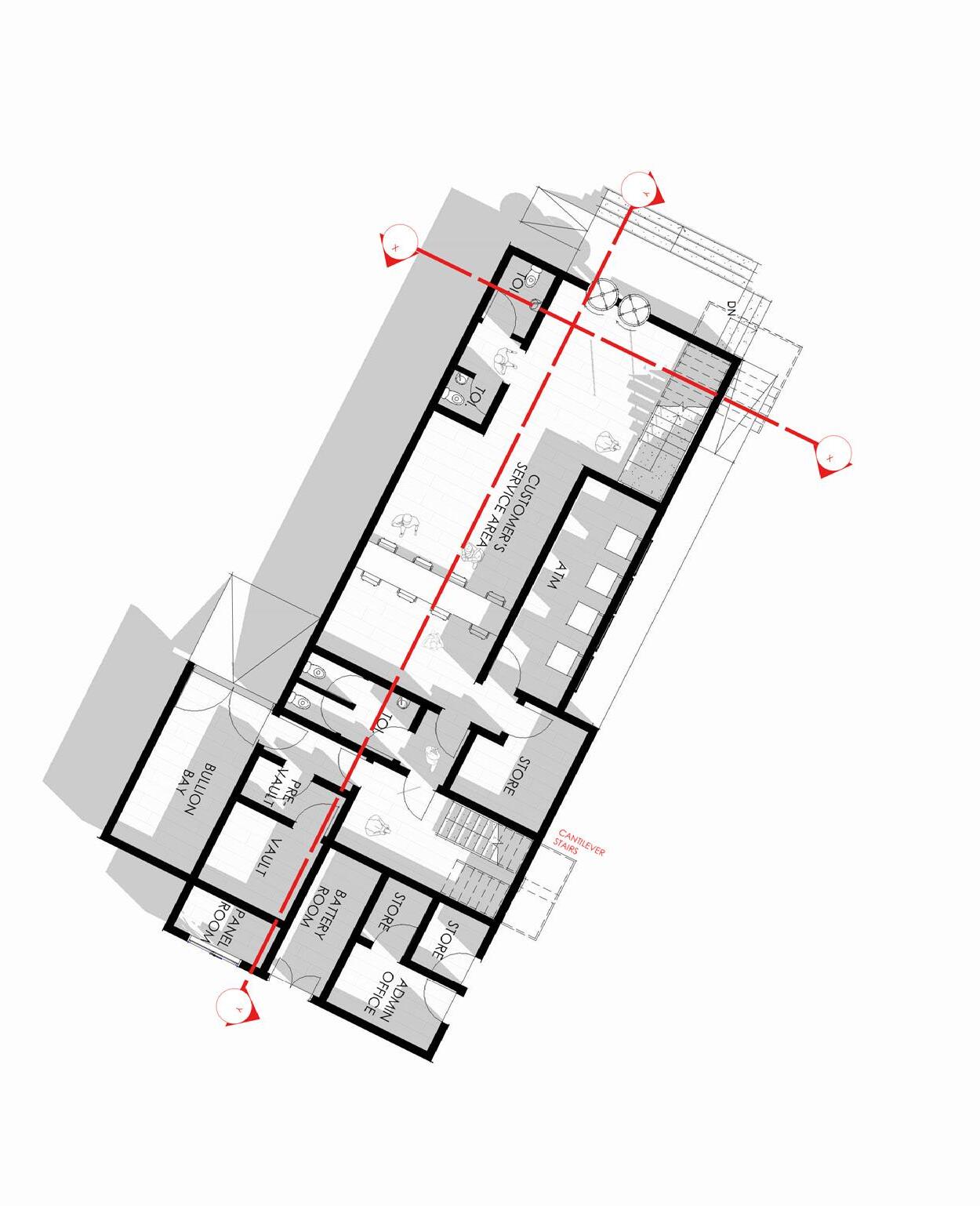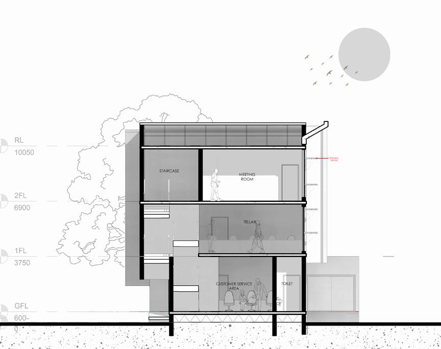 The project site is relatively small, measuring approximately 718.13 m², presenting a key constraint in accommodating the required banking functions. The brief calls for a three-storey building housing the essential components of a modern bank, including a banking hall, customer service areas, teller points, offices, and support spaces, arranged efficiently within the limited site.