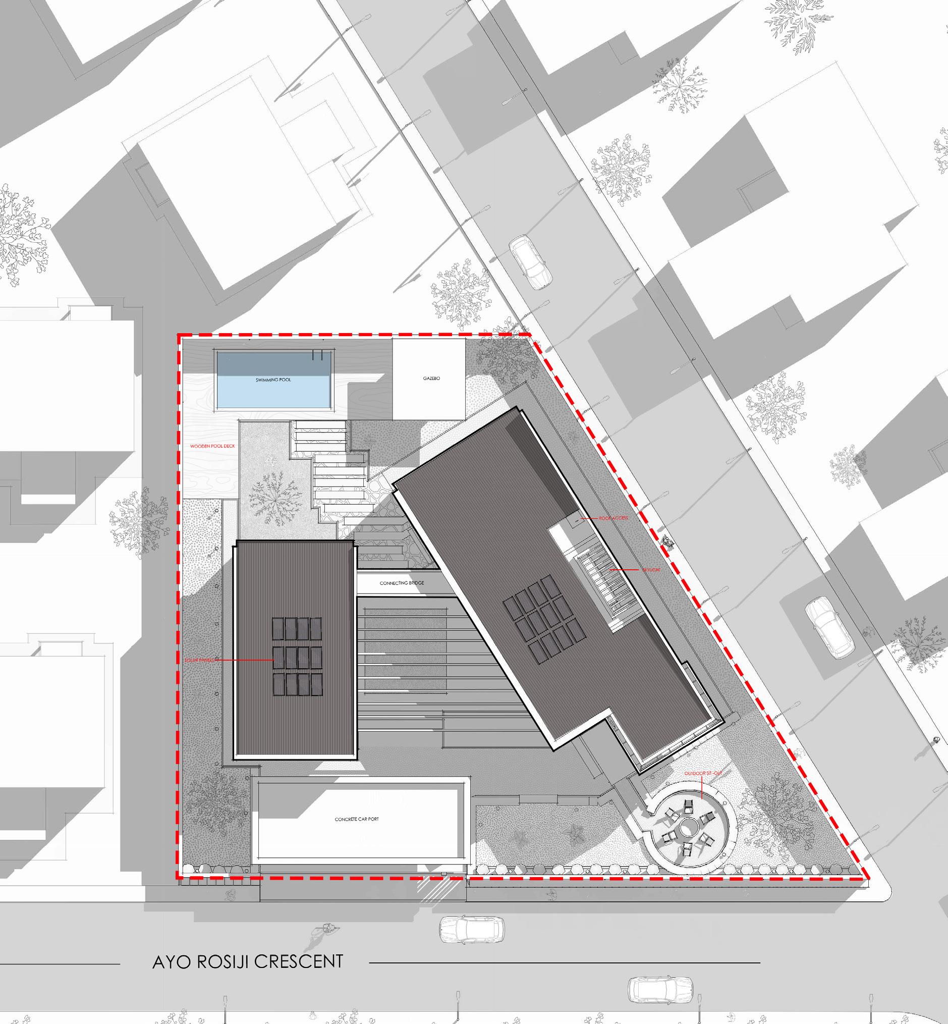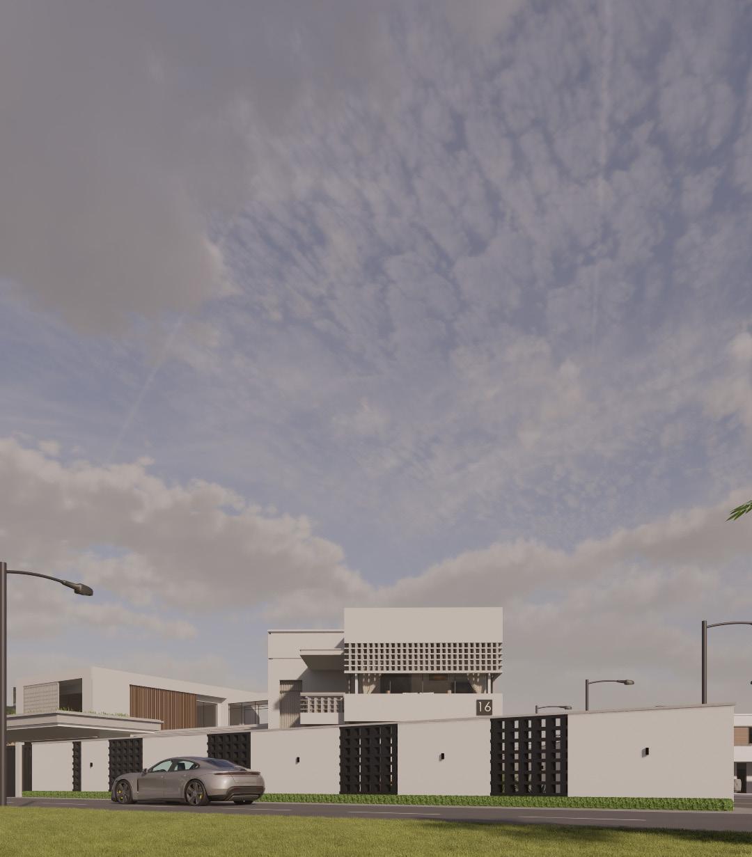 The facade plays a critical role in the overall environmental performance of the building. To moderate solar exposure and reduce visual monotony, a concrete screen wall was introduced at the front elevation, where the bedroom is located and where solar intensity is highest due to the overhead sun.
