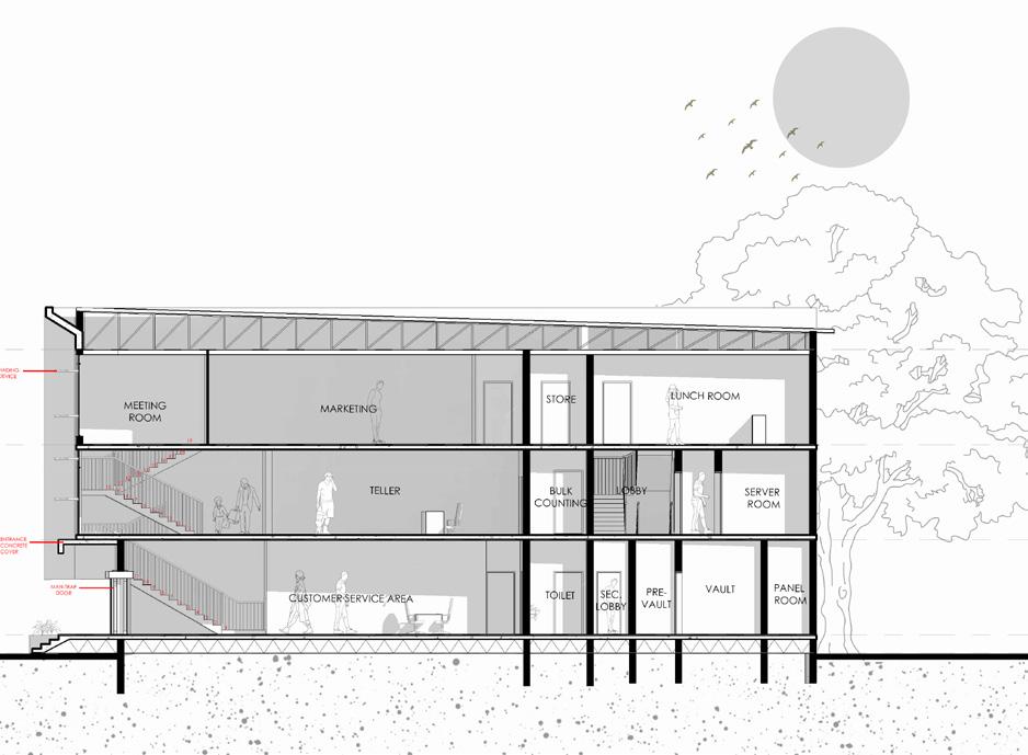 The project site is relatively small, measuring approximately 718.13 m², presenting a key constraint in accommodating the required banking functions. The brief calls for a three-storey building housing the essential components of a modern bank, including a banking hall, customer service areas, teller points, offices, and support spaces, arranged efficiently within the limited site.
