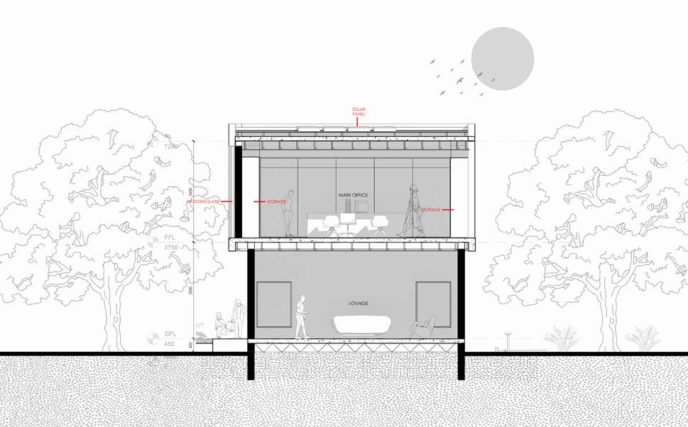 Drawing inspiration from natural habitats, the house is designed for selfsufficiency through solar energy, rainwater harvesting, and passive ventilation strategies.