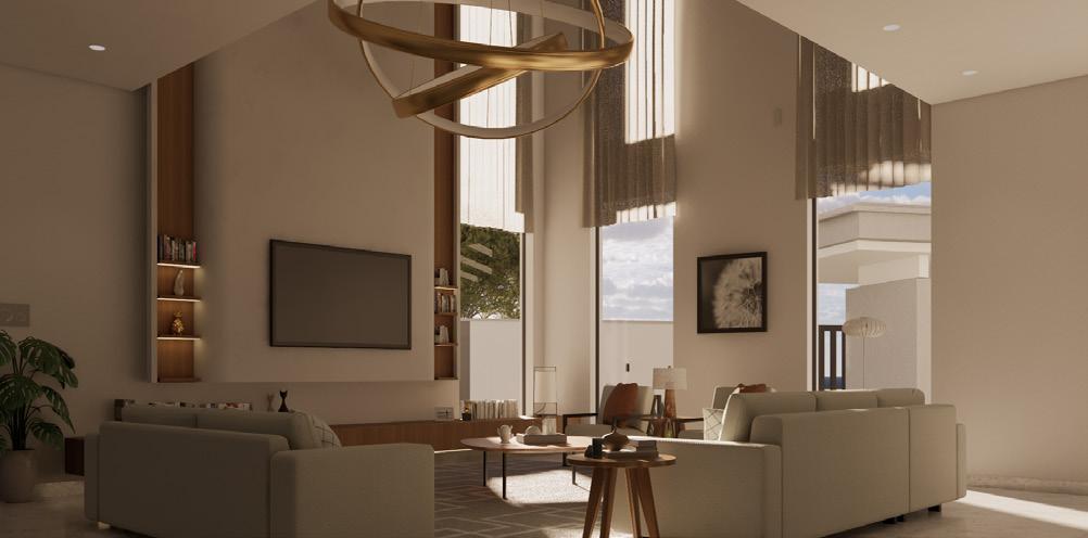 The home is organized to balance openness and privacy, with public spaces positioned at the core and private areas layered deeper within the plan. A double-height living space acts as the social anchor of the home, enhancing daylight penetration and vertical connection.