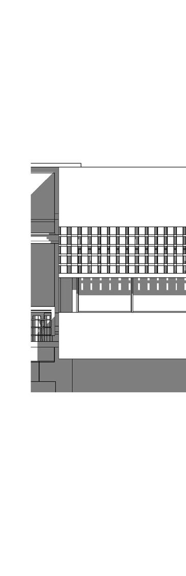 Steel fins support the shading system while also contributing to the overall rhythm and aesthetic of the façade