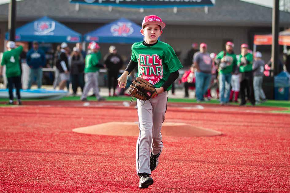 Opened in fall of 2025, the Scheels Sports Complex in Springfield features an indoor dome that is the largest of its kind in the world (196,625 square feet) and has a climatecontrolled environment that ensures year-round play. Among the many things that can be found inside the dome are five batting cages and two softball fields. The complex also sports eight outdoor full synthetic multi-purpose fields with lights and two championship fields. These fields are 400’ baseball fields that can be reconfigured for softball, soccer, lacrosse and more.