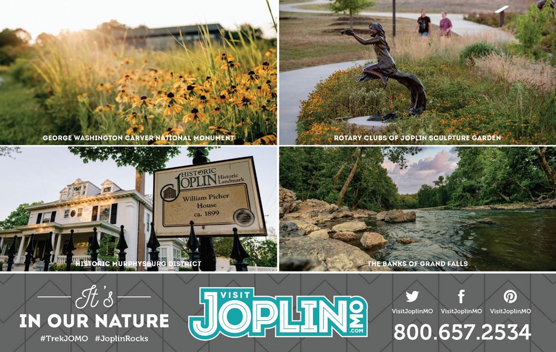 In the southwest corner of Missouri, the legend of Route 66 lives on in Joplin, whose name is mentioned in the lyrics of the famous song “(Get Your Kicks on) Route 66.” Route 66 Mural Park on Main Street features two large tile murals and a red mock 1964 Chevy Corvette, a popular photo stop.