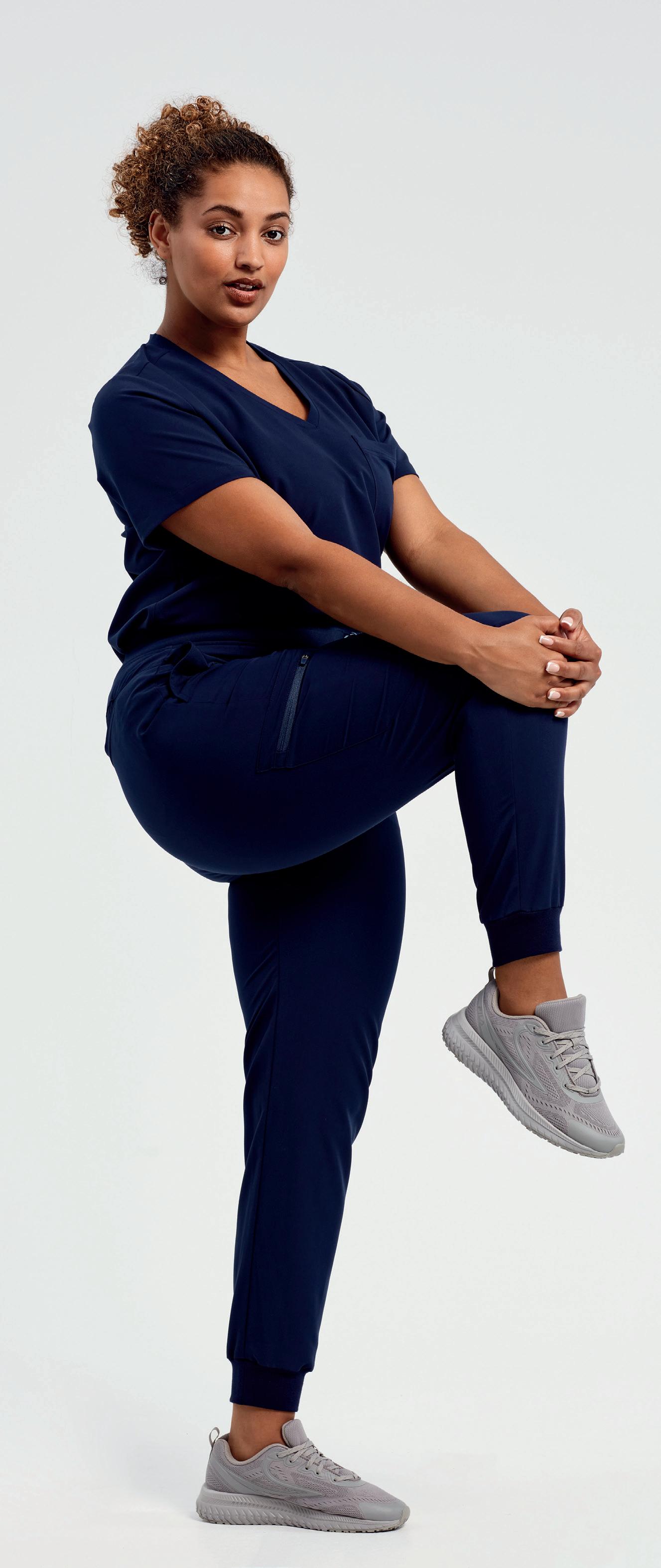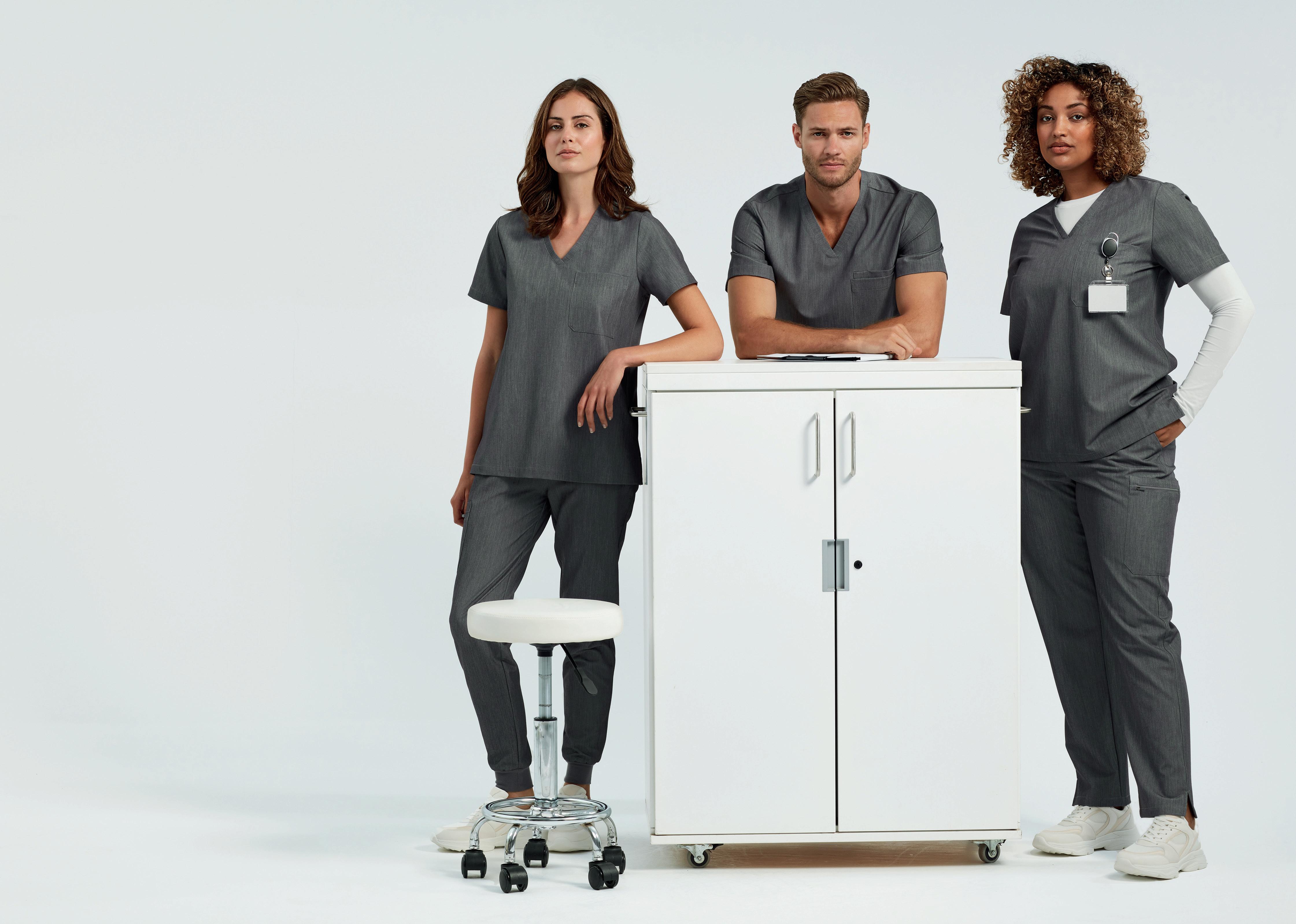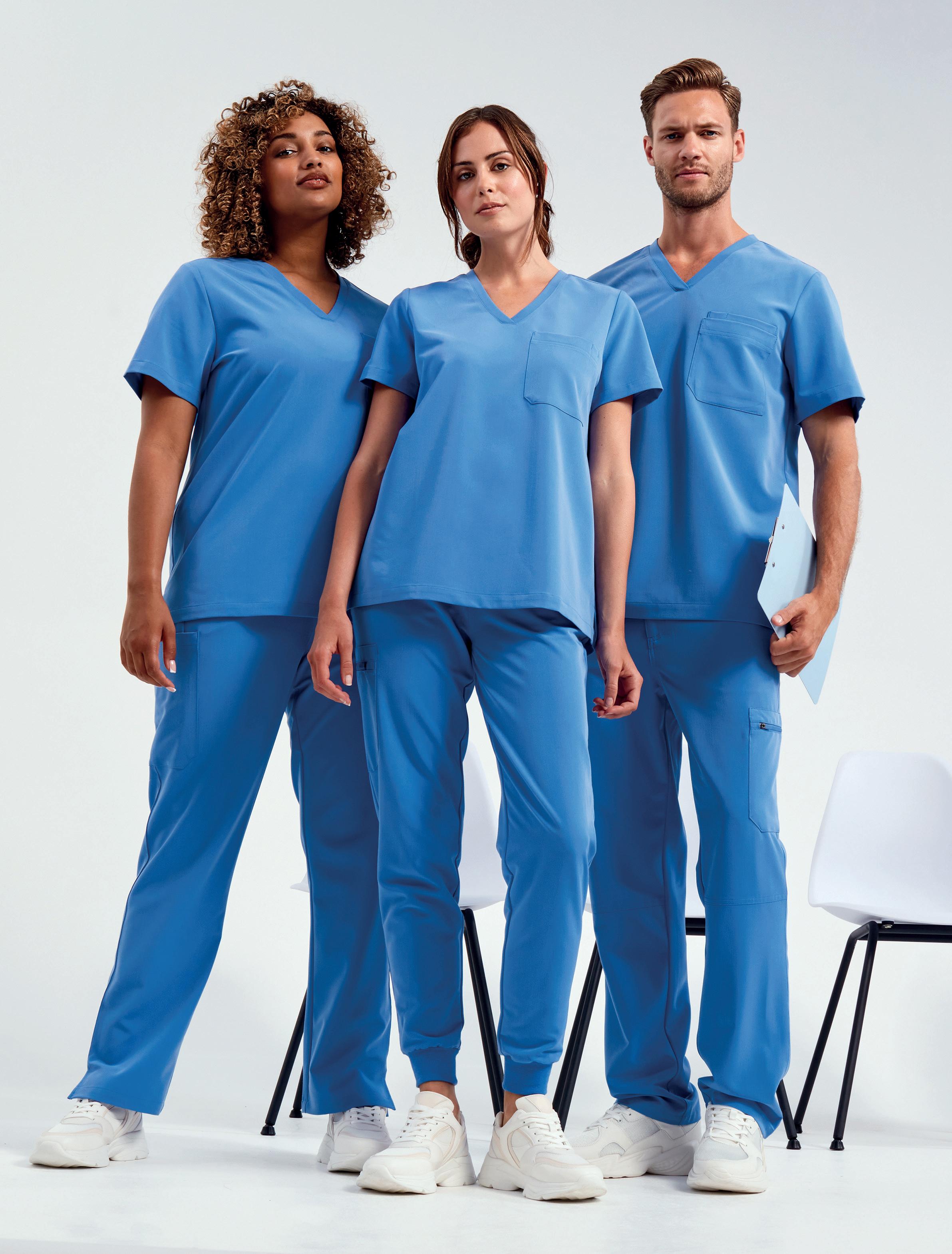 Think activewear meets professional uniform. Technical fabrics engineered with super 4-way stretch. Tunics and pants designed for comfort and compliments. Breathable base layers that feel like a second skin. All in a range of team colours that are anything but dull, so you can make light work of the toughest days.
