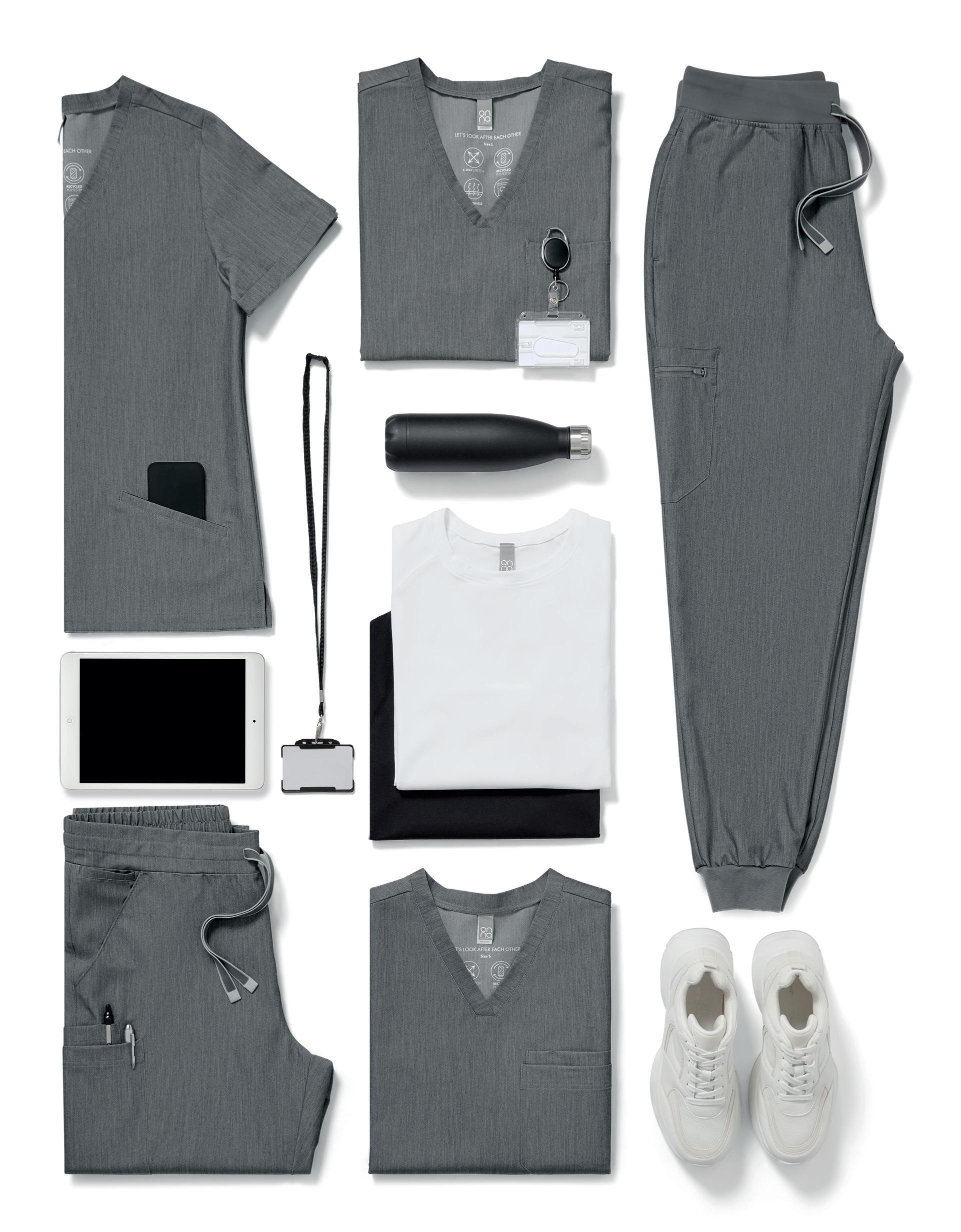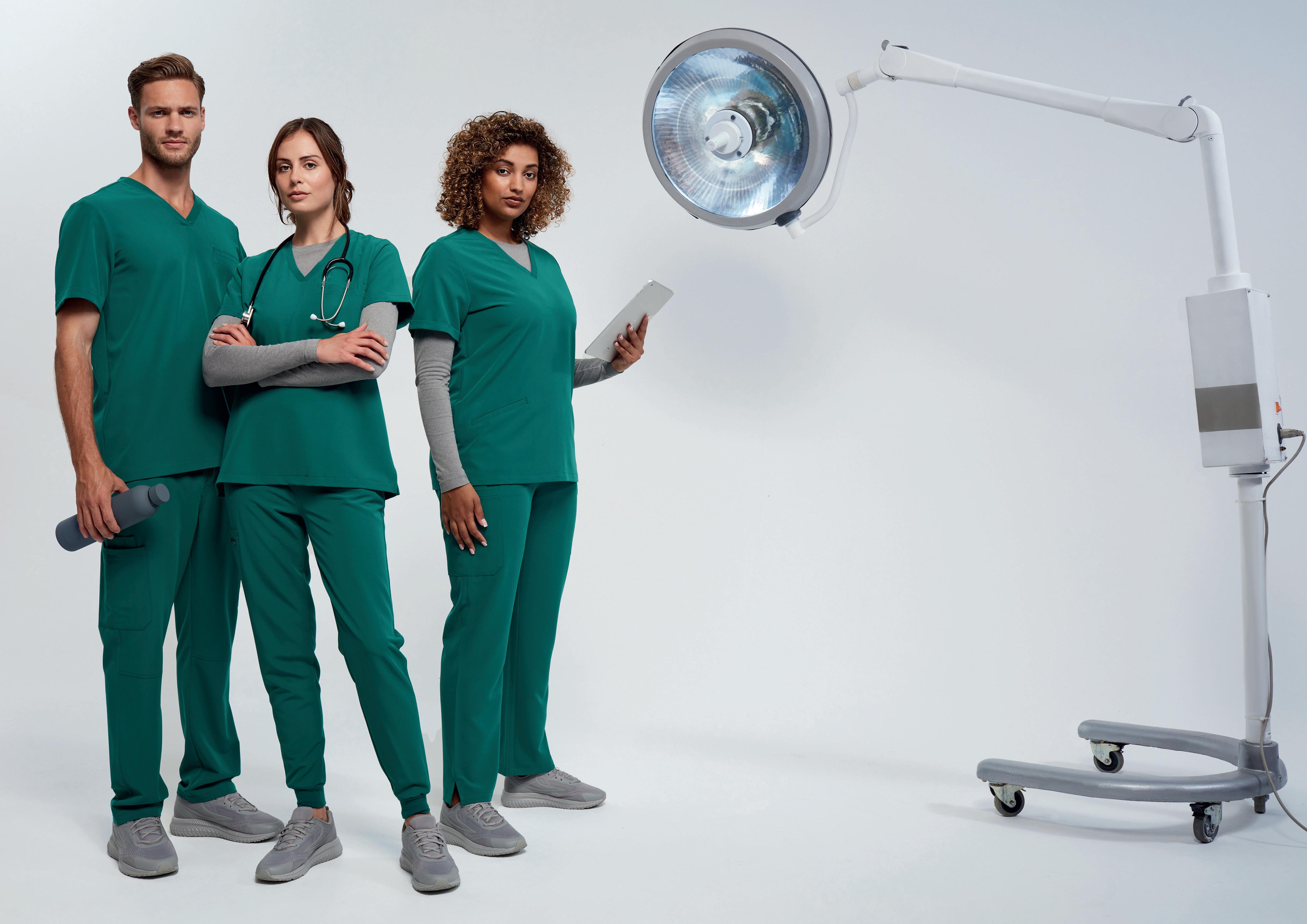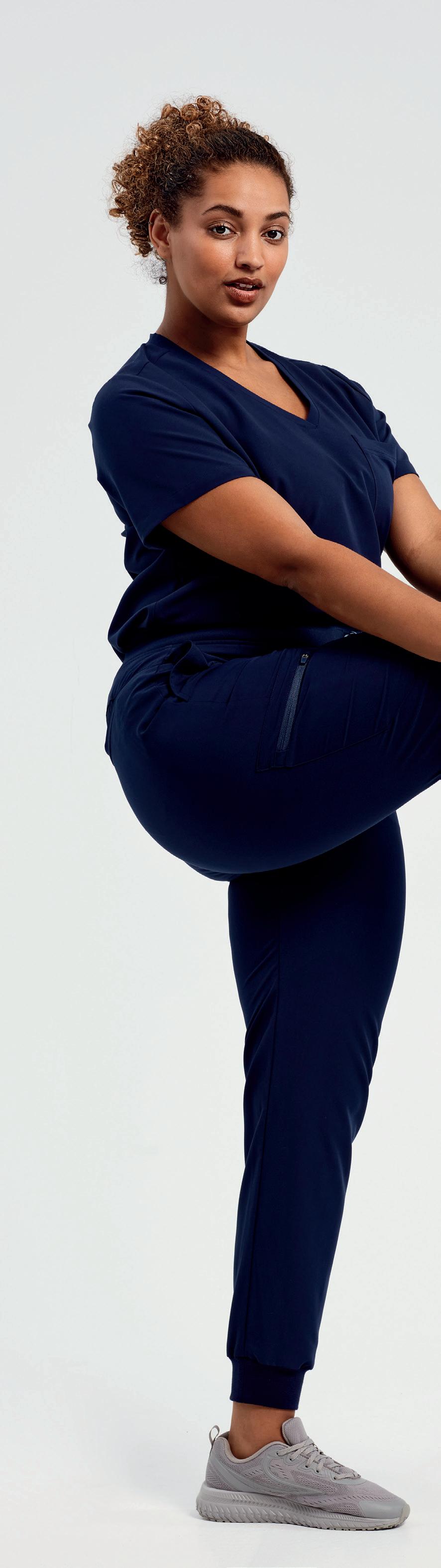 Think activewear meets professional uniform. Technical fabrics engineered with super 4-way stretch. Tunics and pants designed for comfort and compliments. Breathable base layers that feel like a second skin. All in a range of team colours that are anything but dull, so you can make light work of the toughest days.