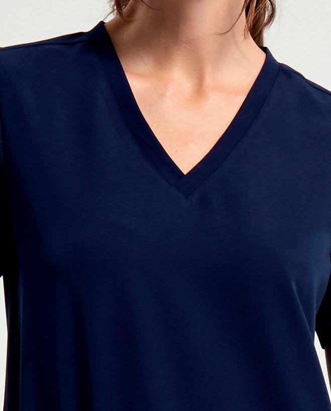 V-neck style with two front pockets. Breathable 4-way stretch for easy movement and all day comfort. Durable, crease resistant and easycare. Modern fi with back darts and side vents.