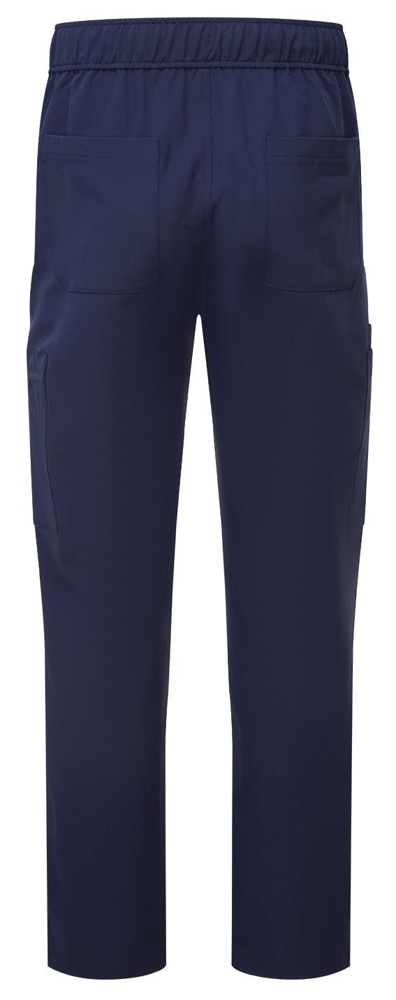 Tissu quadri-extensible perméable à l’air pour vous faciliter les mouvements et vous procurer un confort tout au long de la journée. Durable, infroissable et facile d’entretien. Ceinture avec cordon de serrage élastiqué et fausse braguette. Poches multiples pour portable, pièces de monnaie et zippées. Chevilles bordées de maille côtelée, Longueur de jambe 28.5”/ 72.5cm