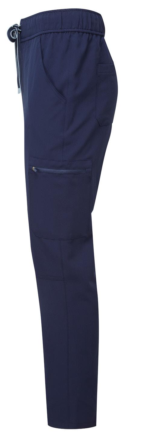 Tissu quadri-extensible perméable à l’air pour vous faciliter les mouvements et vous procurer un confort tout au long de la journée. Durable, infroissable et facile d’entretien. Ceinture en partie élastique à cordon de serrage. Poches multiples pour portable, pièces de monnaie et zippées. Ourlet à fentes pour faciliter les mouvements, Longueur de jambe 29”/ 74cm.